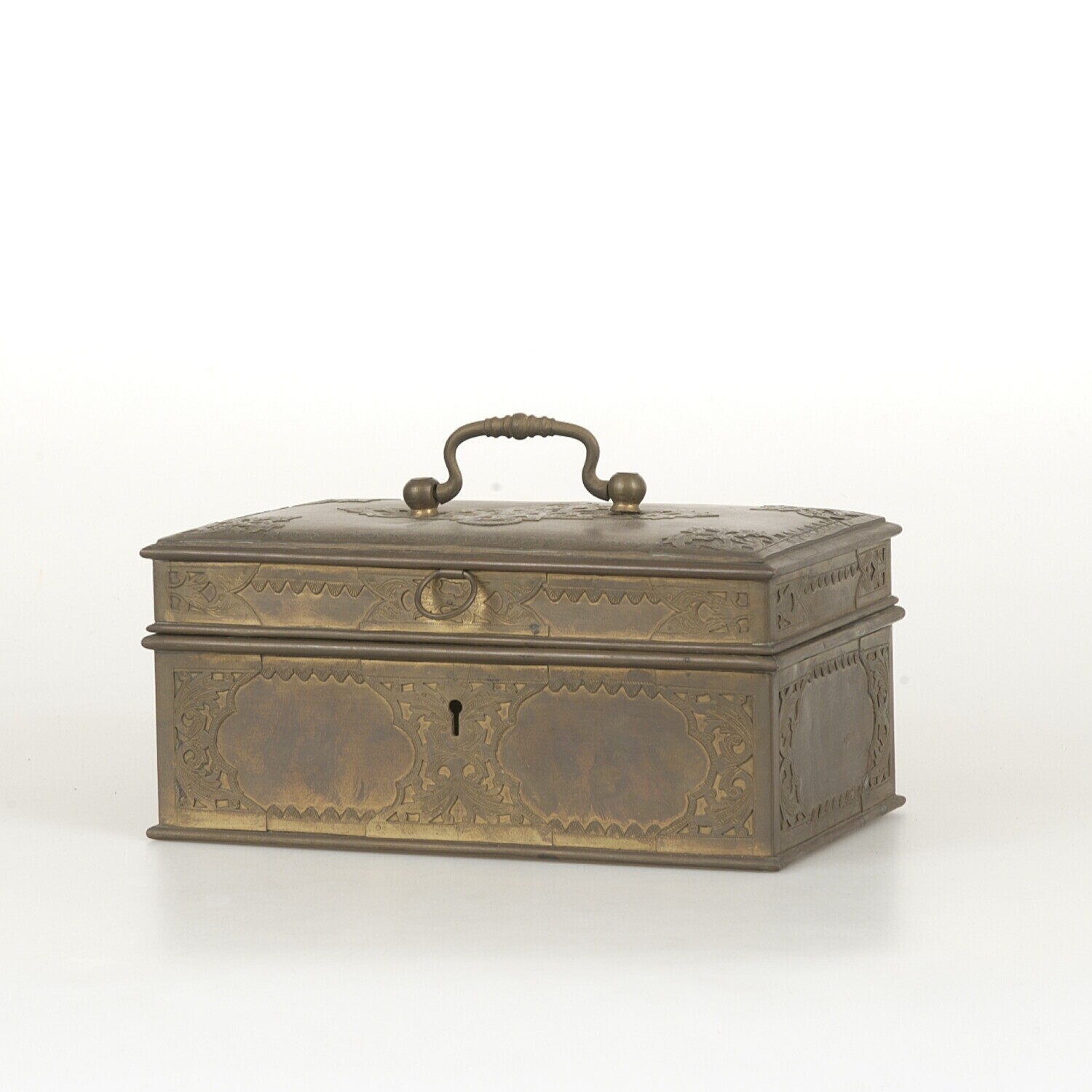 Messingen gordelplaat, versierd met bloem- en bladmo...