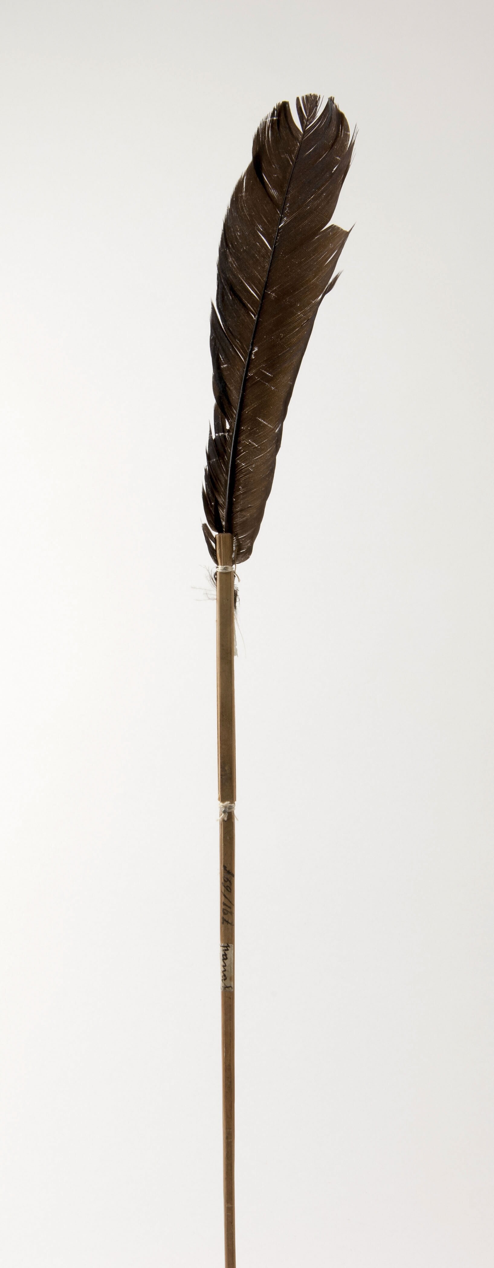 Bamboe pijl met aan het achtereinde richtingsveertje...