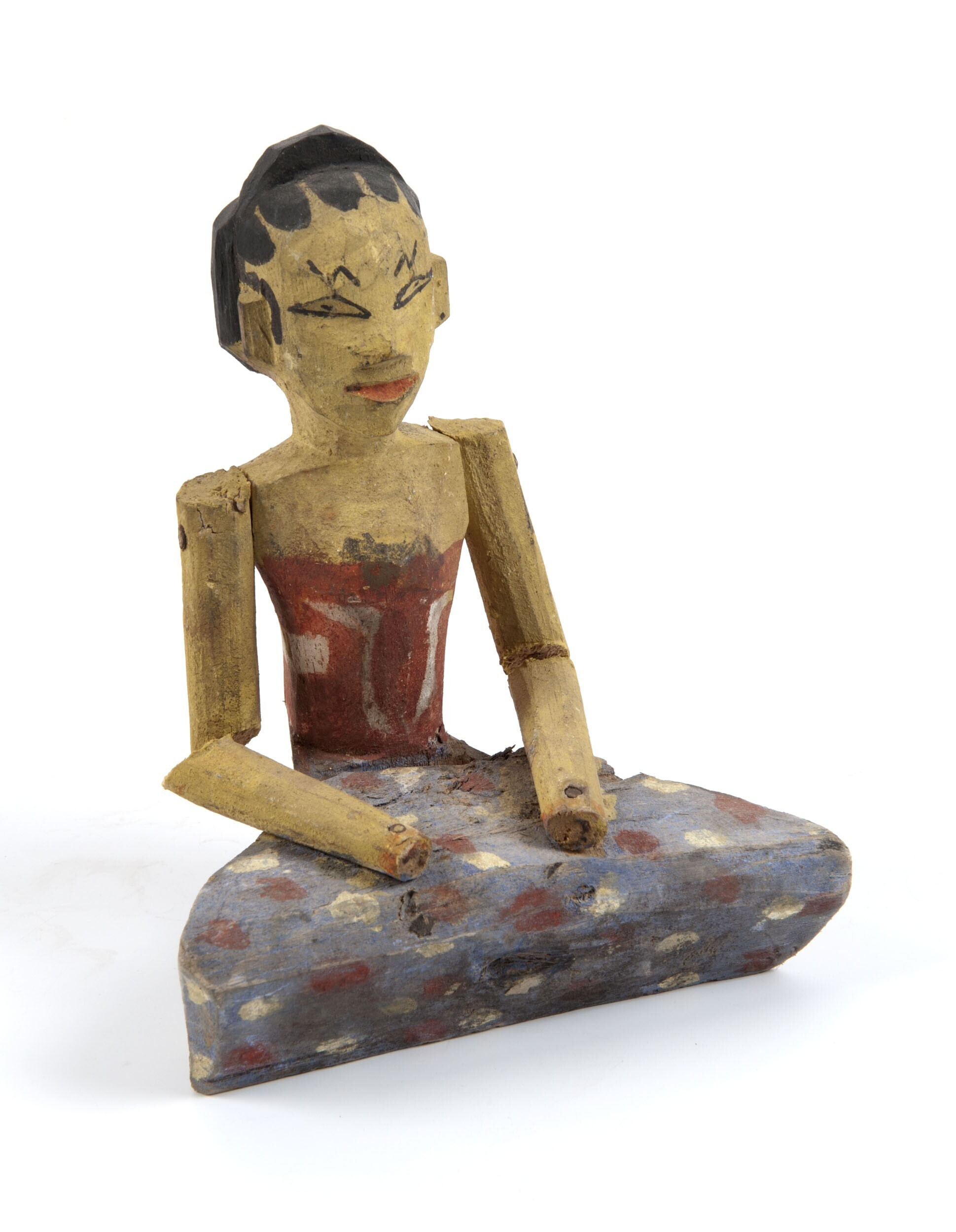 Houten pop van een batikster aan haar batikrak, kato...