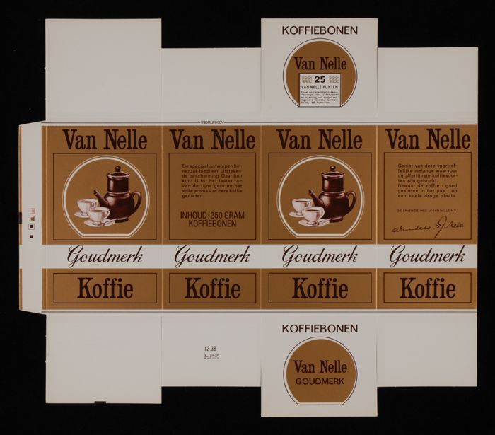 Ongevouwen doos Van Nelle's "Goudmerk" koffie, 250 gram