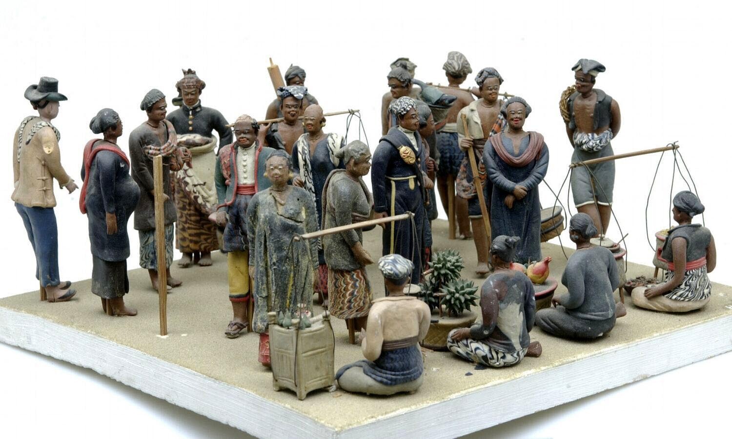 Model van een markt in Surabaya met figuren