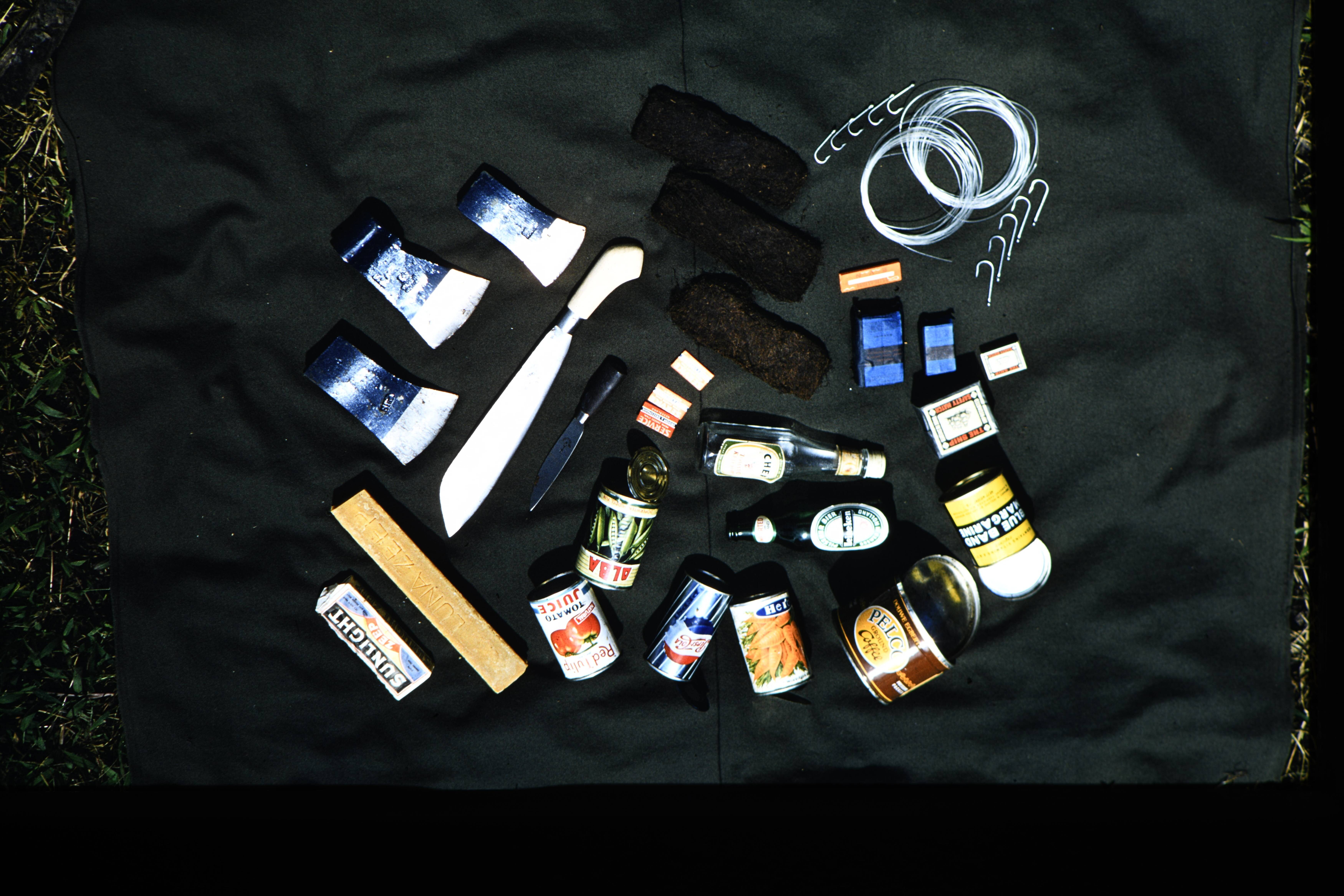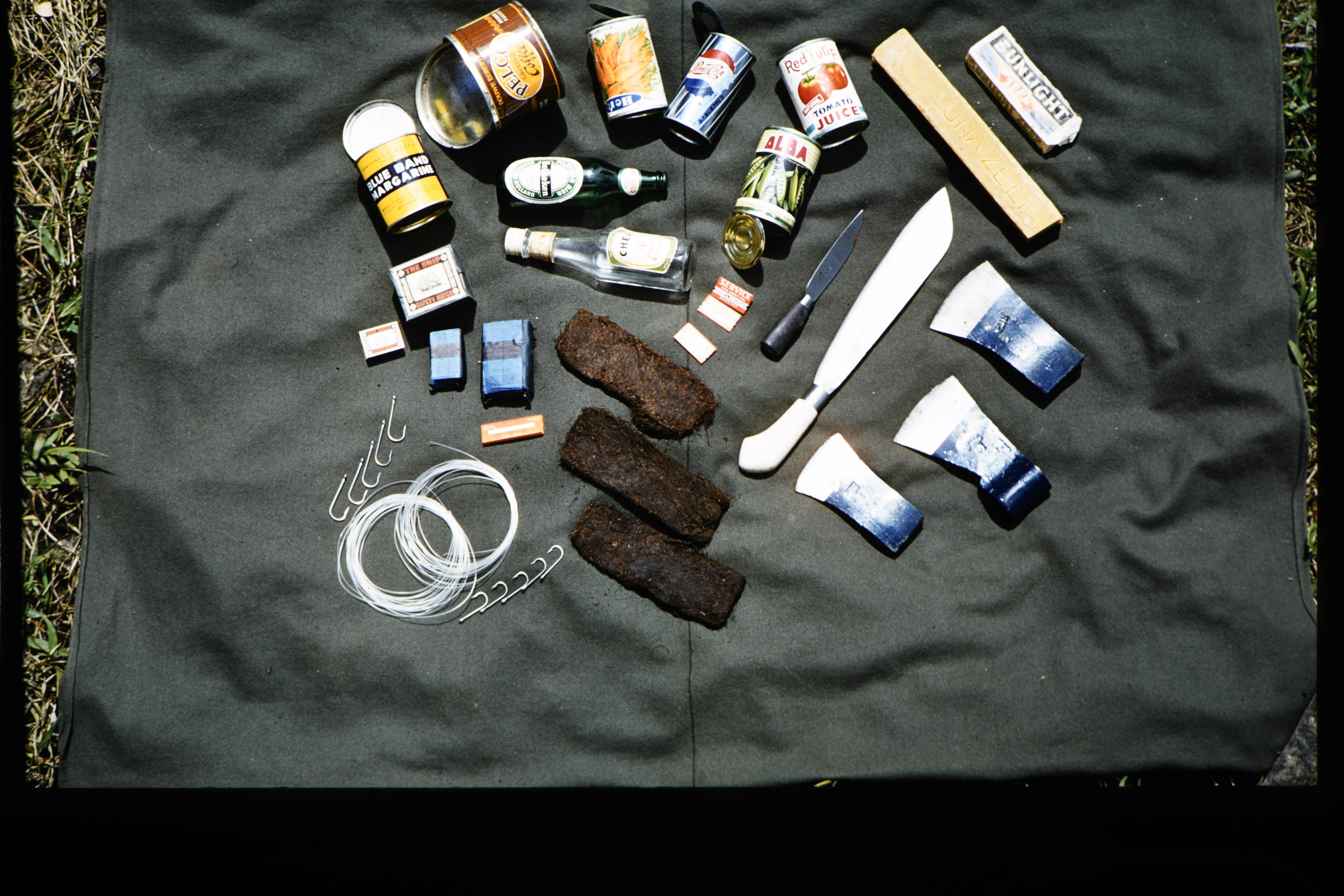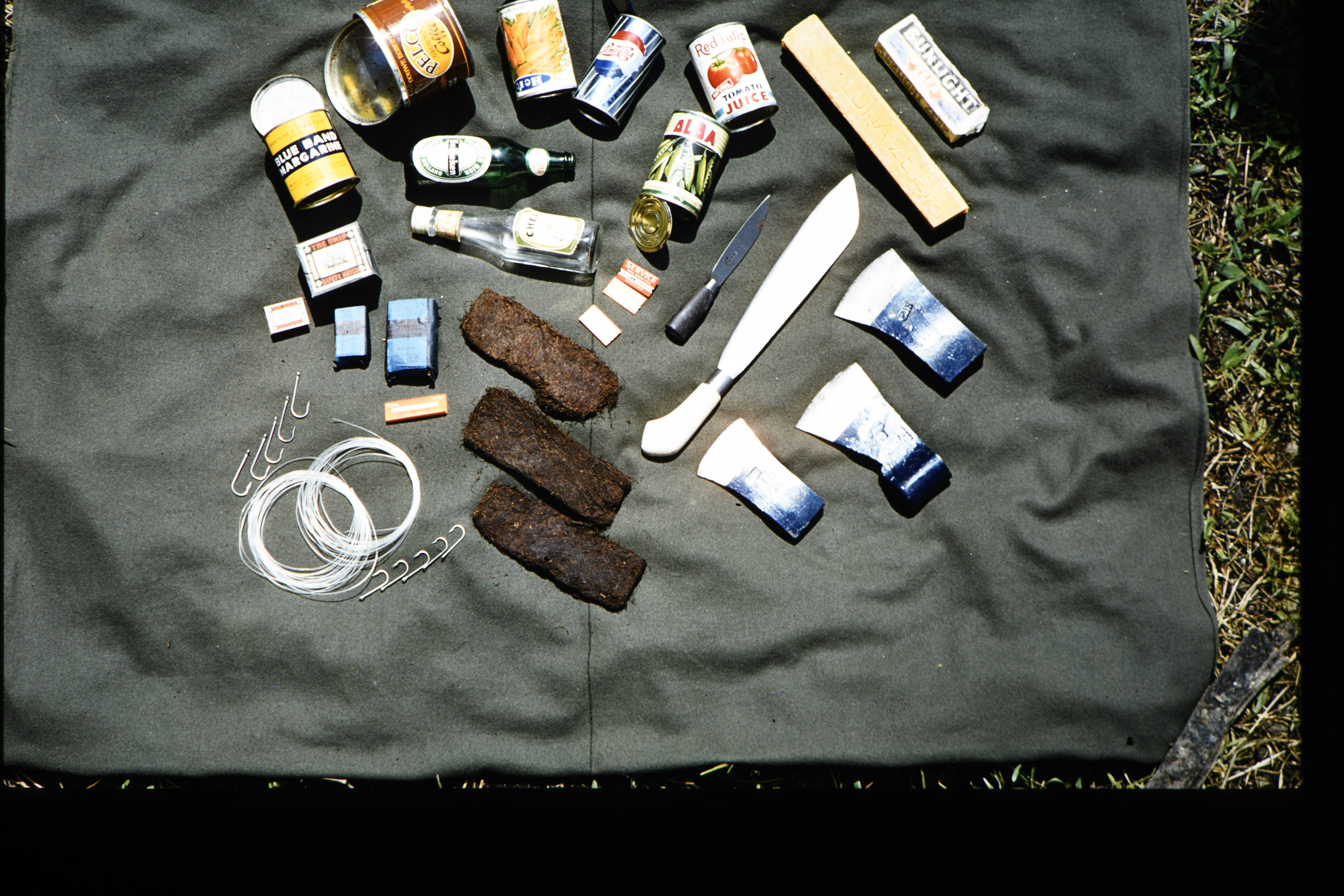 Groene deken waarop assortissement ruilgoederen. f 4...