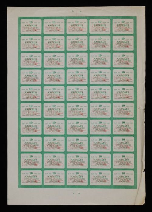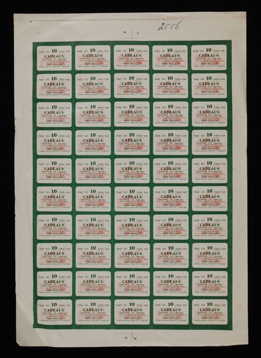 Twee vellen met gedrukte waardebonnen met tien spaar...