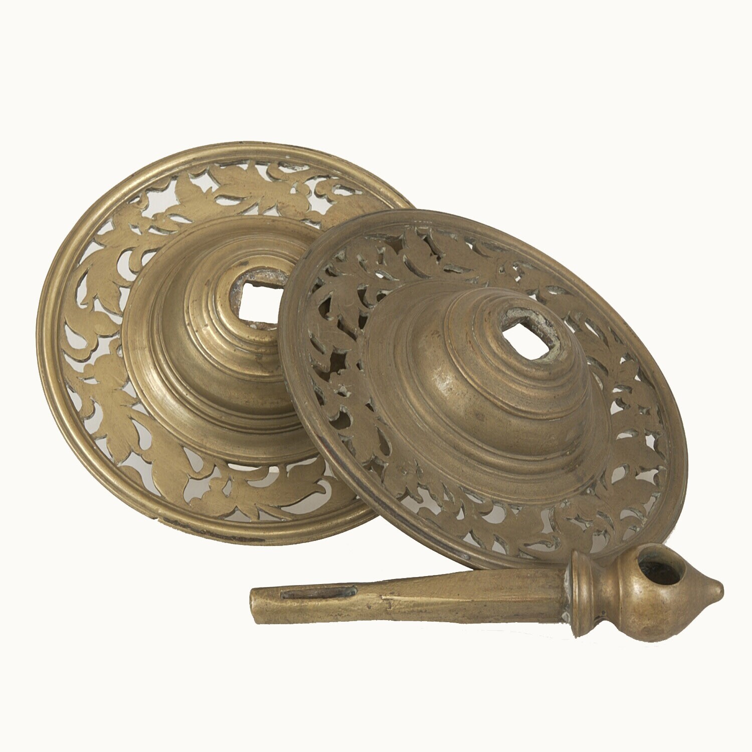 Driedelig messing deurornament versierd met blad- en...