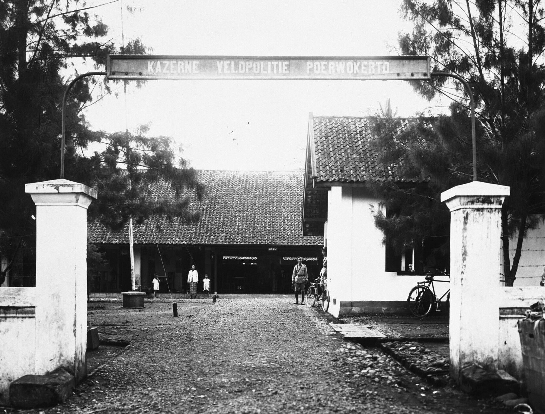 Ingang van de kazerne van de Veldpolitie in Poerwokerto