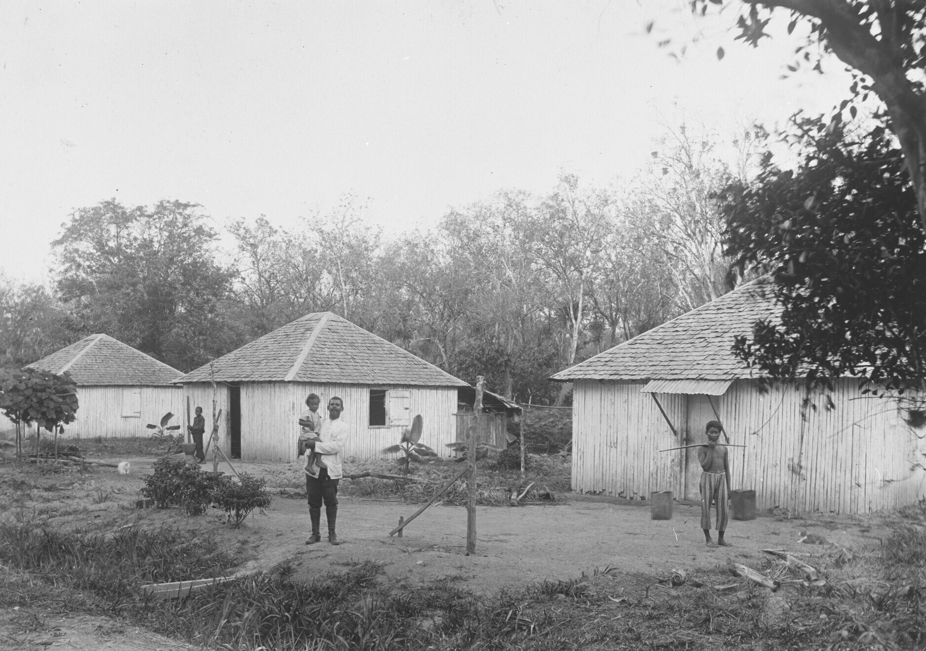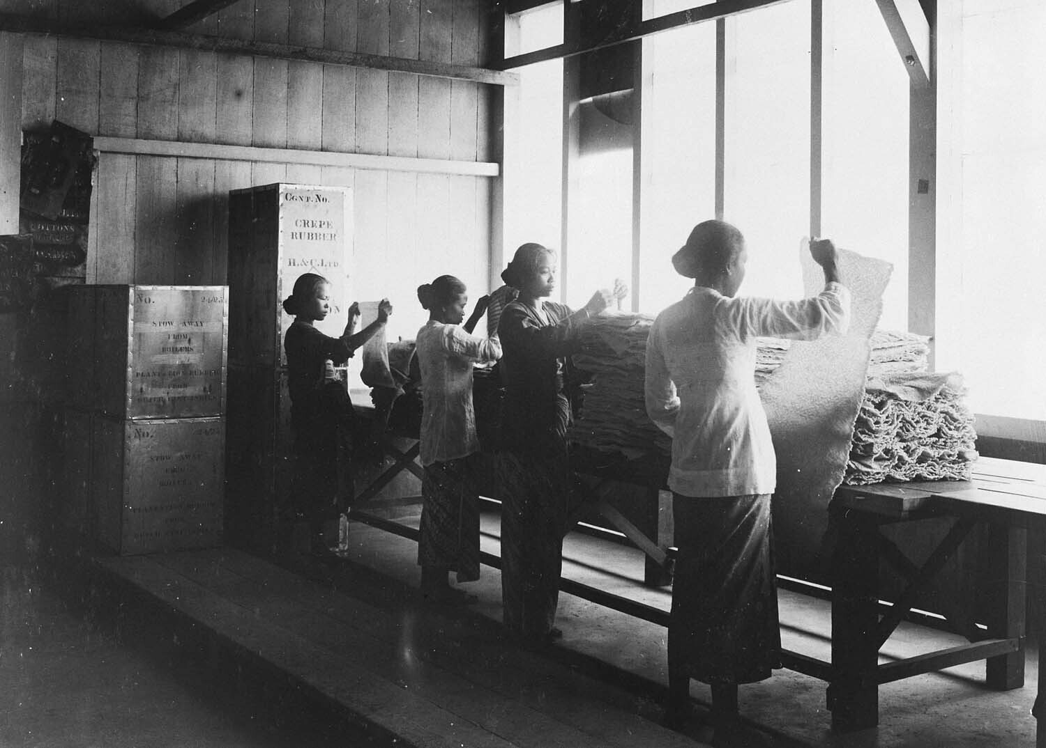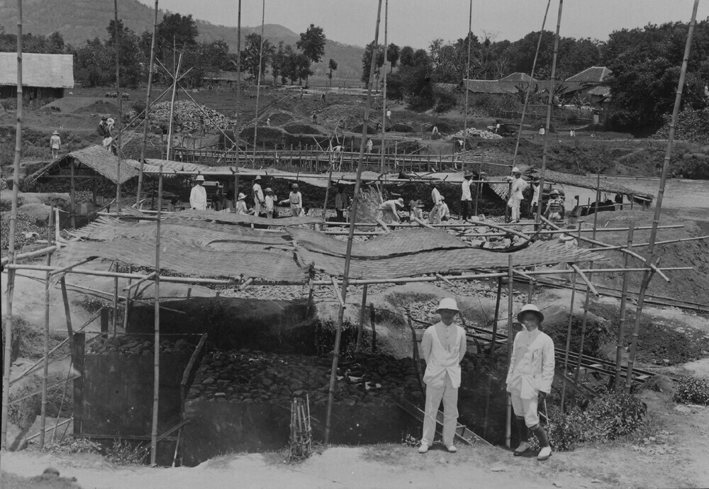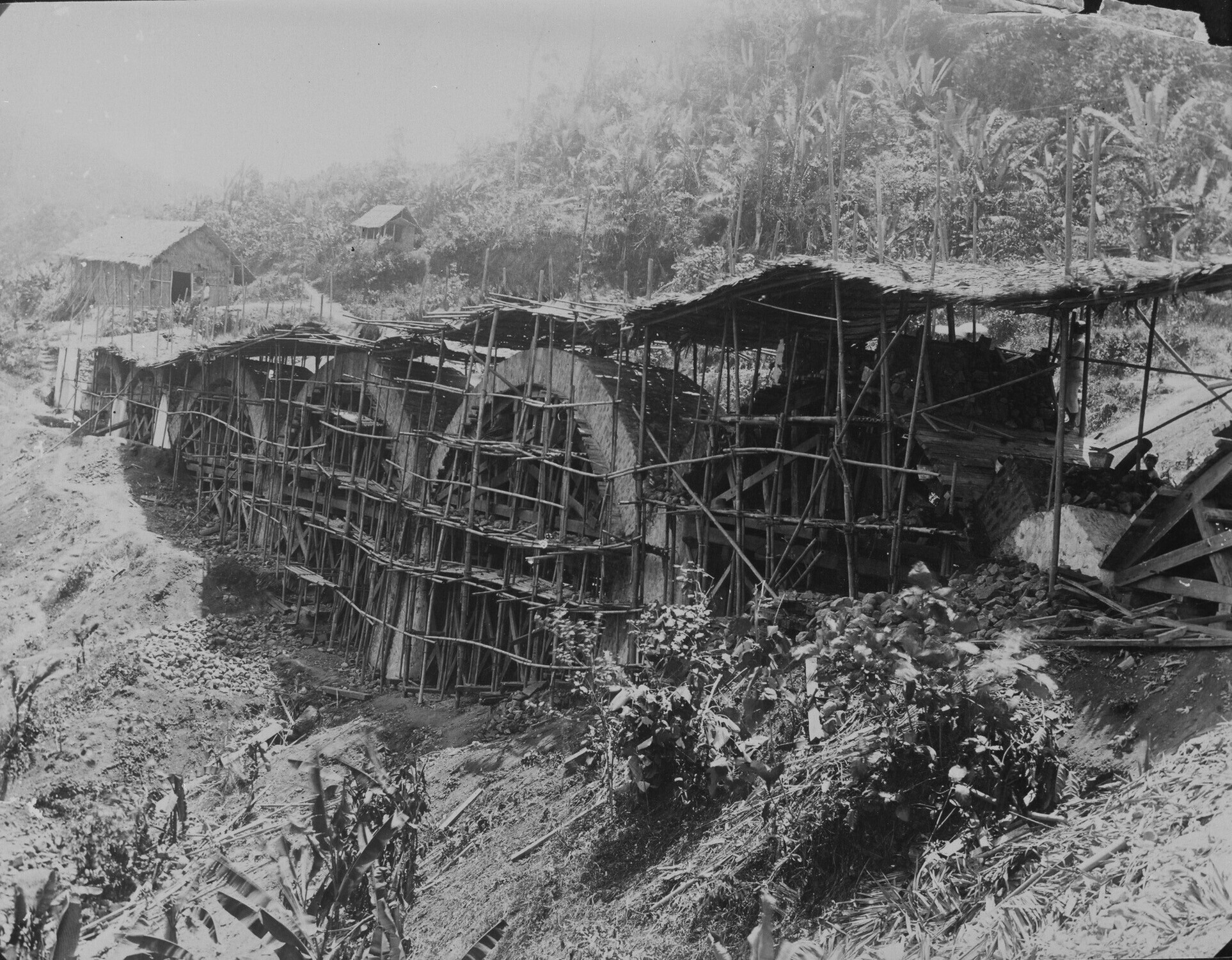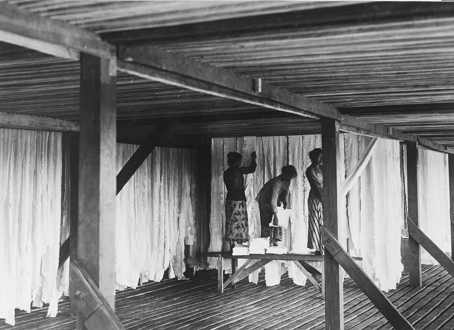 Rookhuis bij de rubberfabriek van de plantage Naga T...