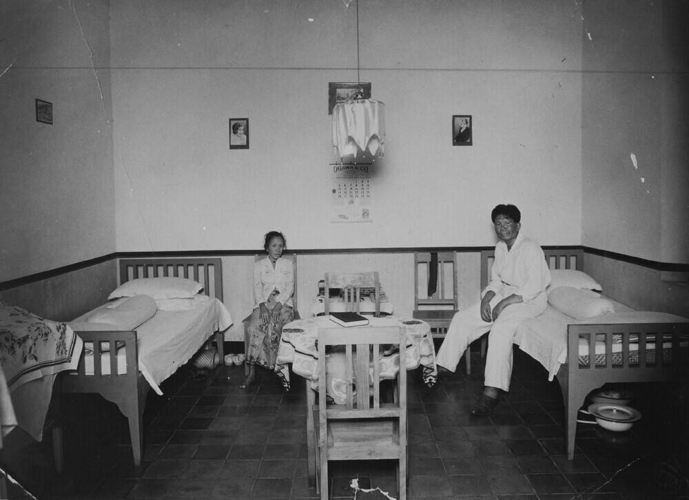 Patiënten in hun kamer in de leprozerie Dono Rodjo o...