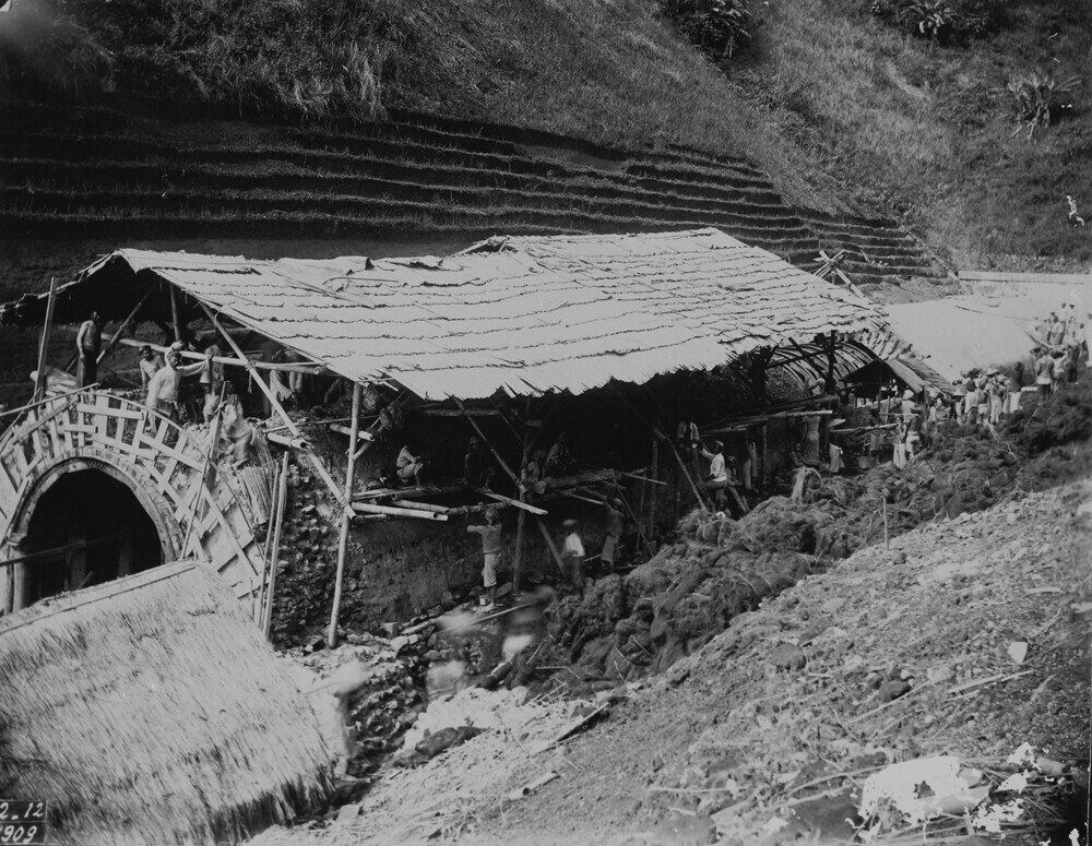 Het schavot met de galg waaraan een op 31 maart 1903...