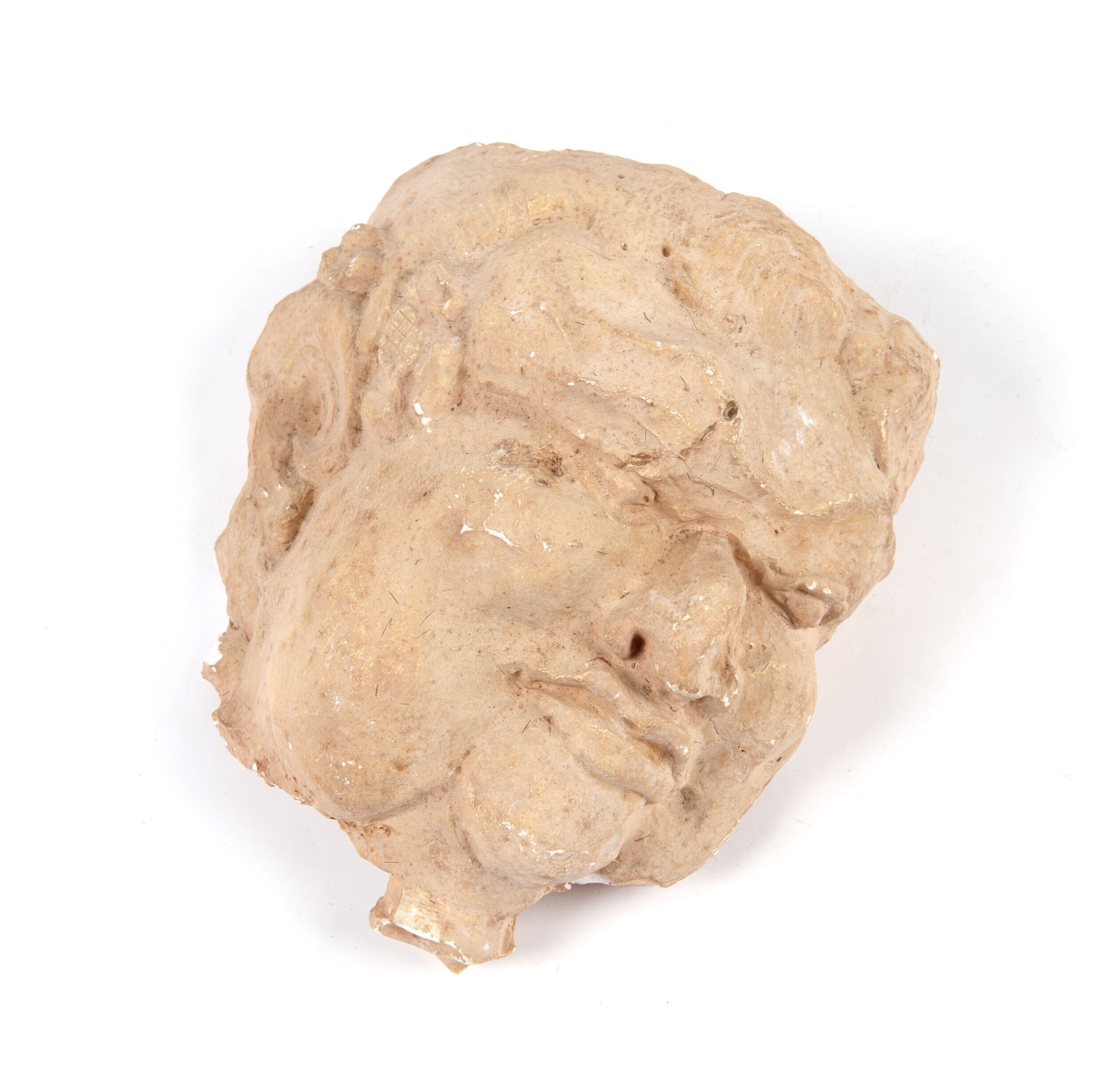 Gipsafgietsel terracottakop met potsierlijk gebundel...