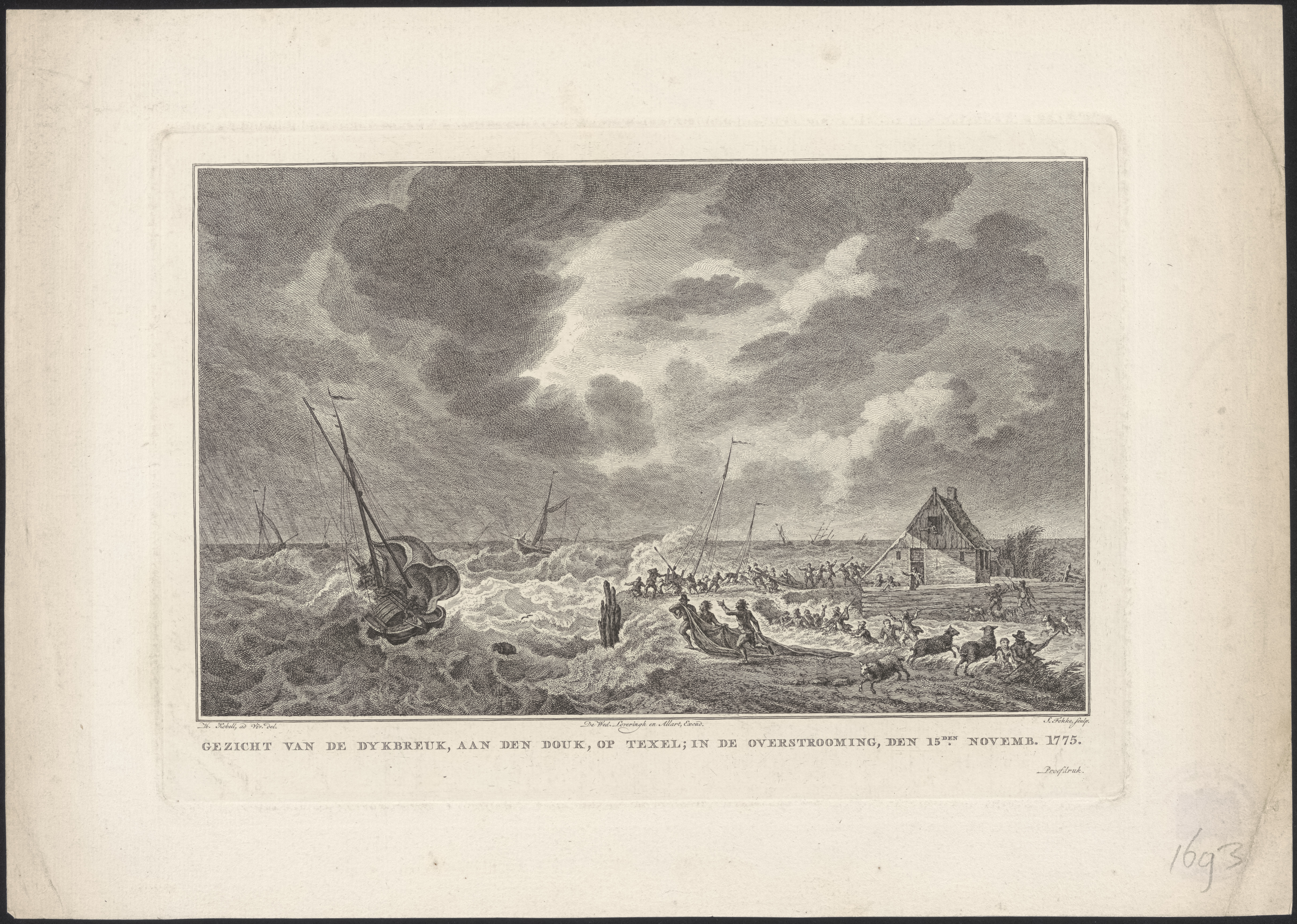 Gezicht van de dykbreuk aan den douk op Texel in de ...