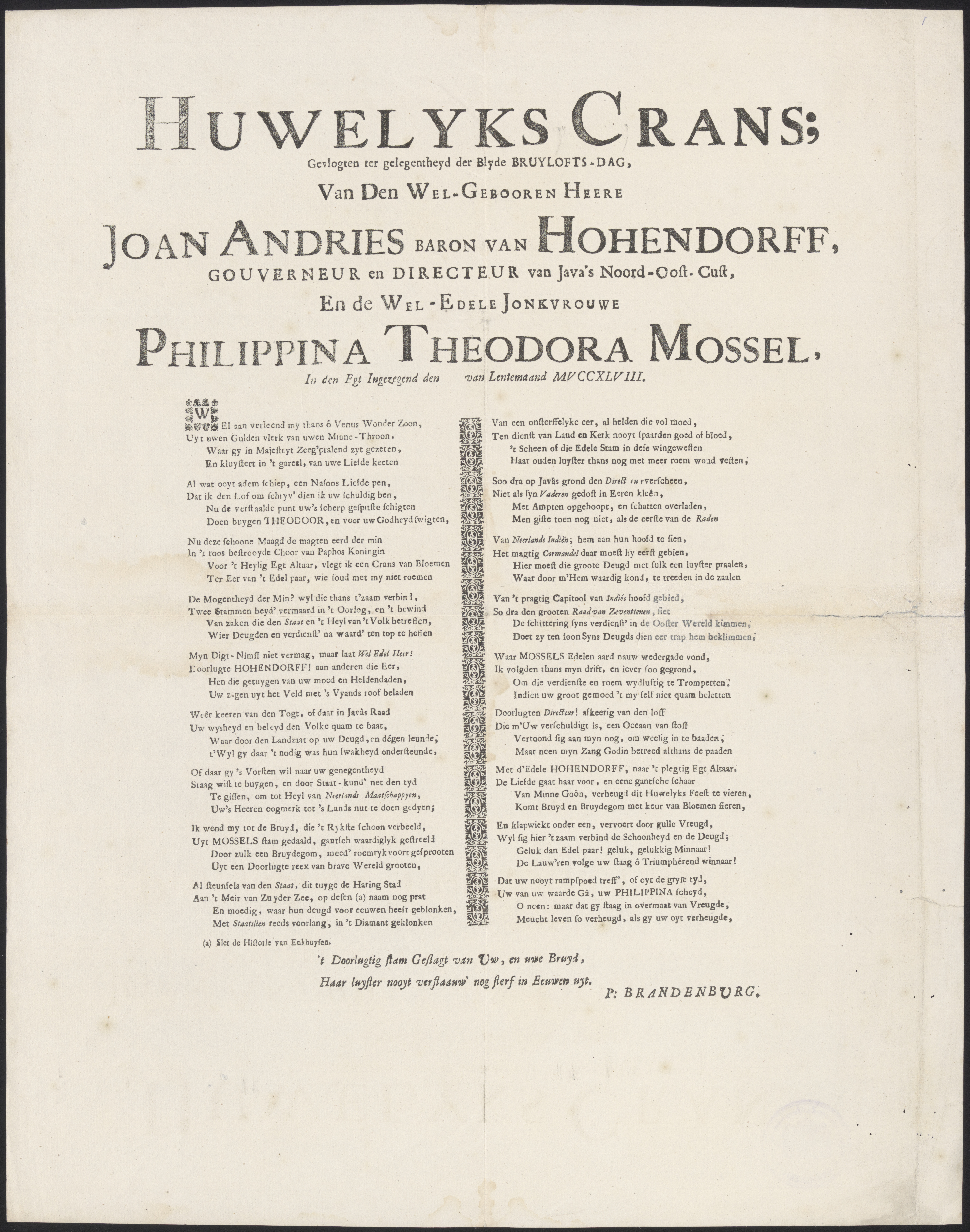 Huwelyks crans. Gevlogten ter Gelegentheyd der Blyde...