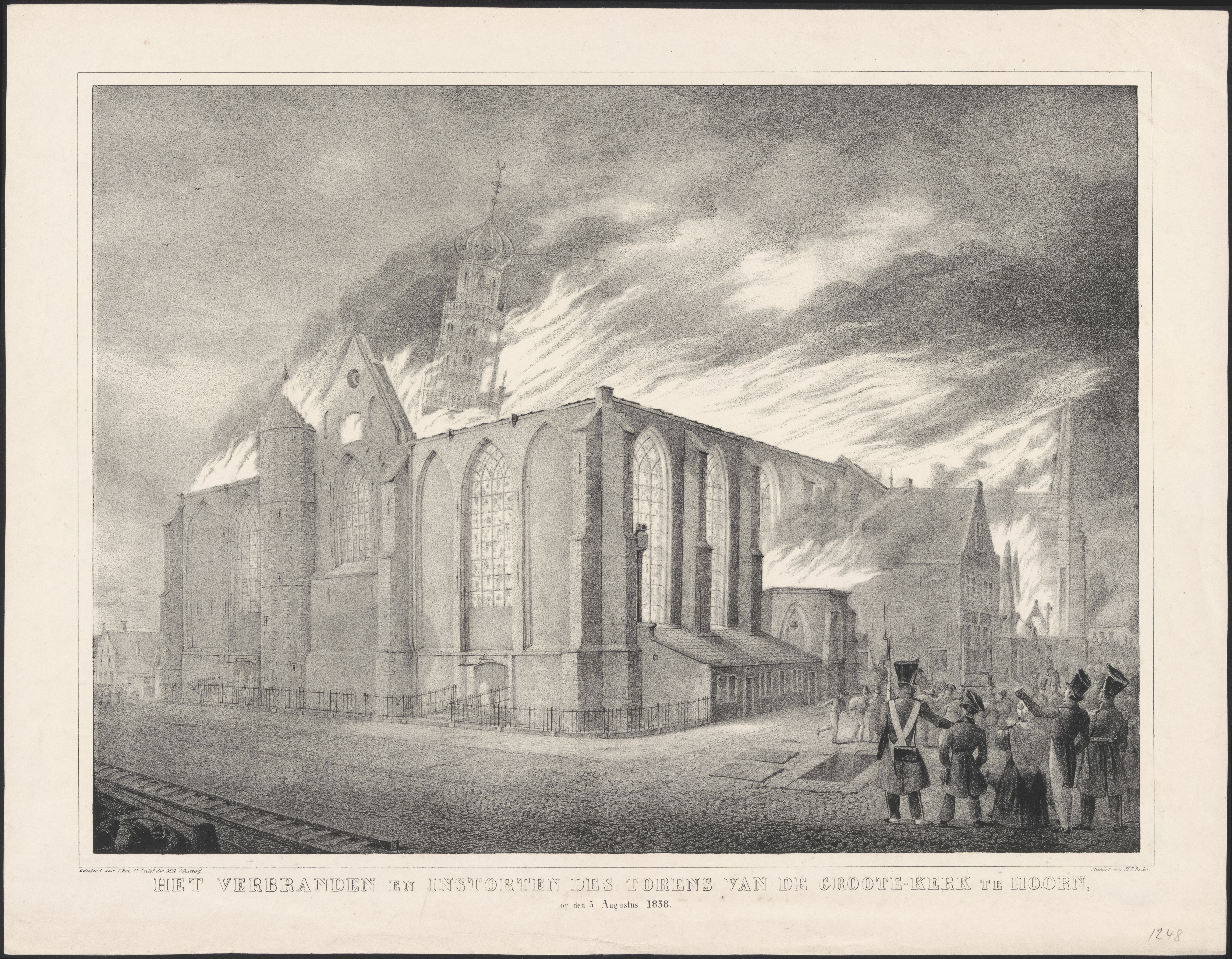 De hoofdtoren te Hoorn, door het Onweder in brand ge...