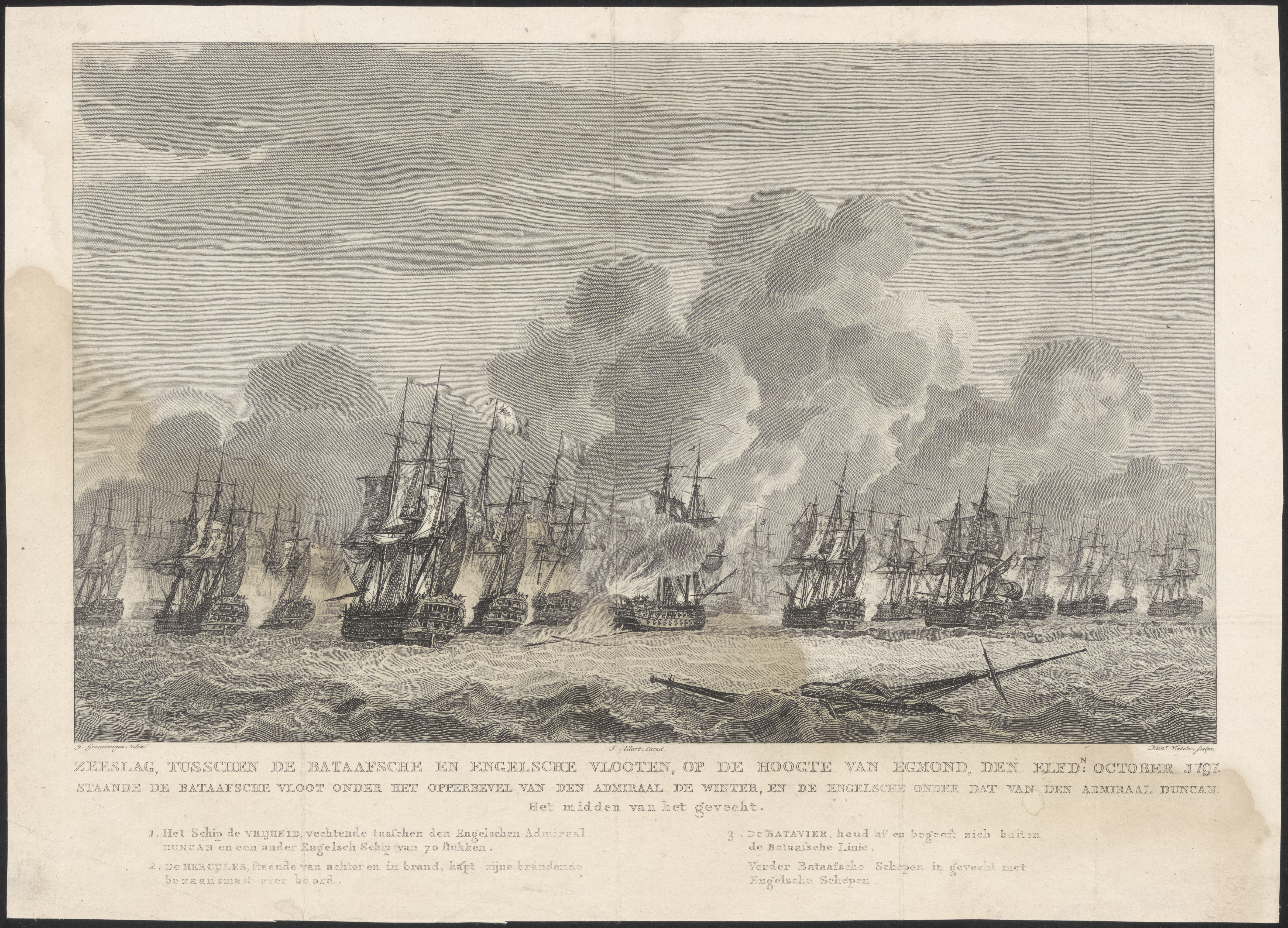 Zeeslag tusschen de Bataafsche en Engelsche vloot op...