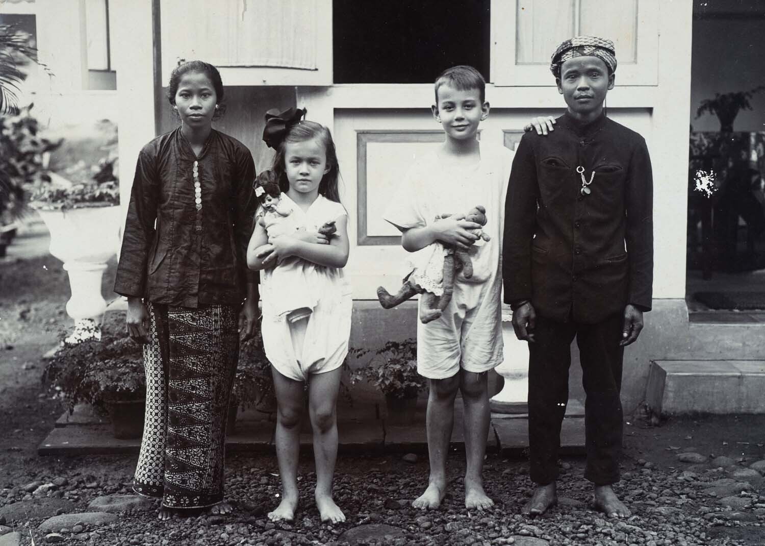 Een groep van Javaanse immigranten in het 'Depot' te...