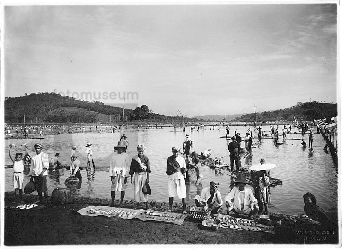 Viswedstrijd tijdens waterfeest, Bandung, Java, Indo...