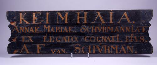 Zwart houten bord met het woord 'KEIMHLIA' in gouden...