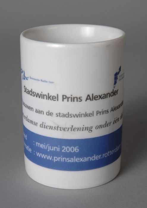 Beker van Stadswinkel met logo deelgemeente Prins Al...