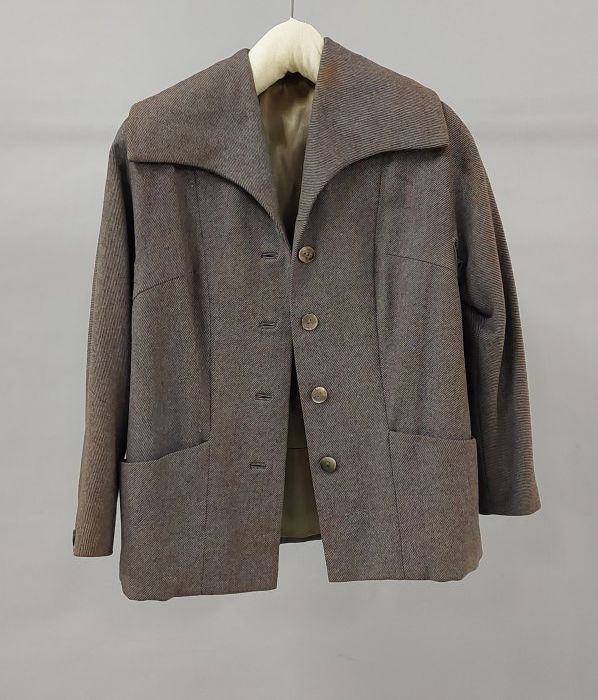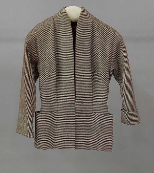 Jasje van mantelpak, van wit-bruin gestreepte wol