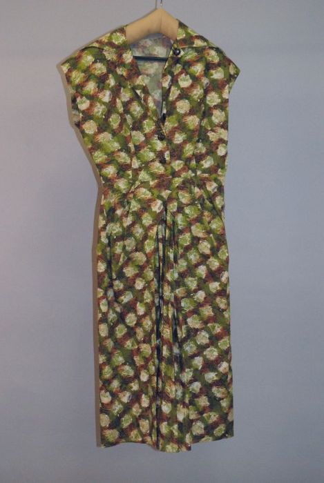 Rok van mantelpak van wit-bruin gestreepte wol, koke...