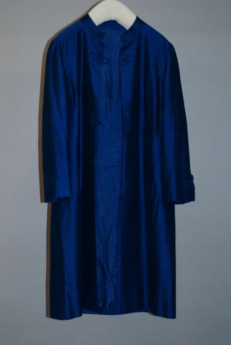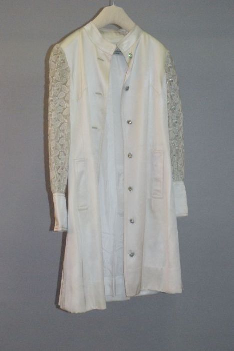 Robe-manteau van witte satijn met mouwen van gebordu...