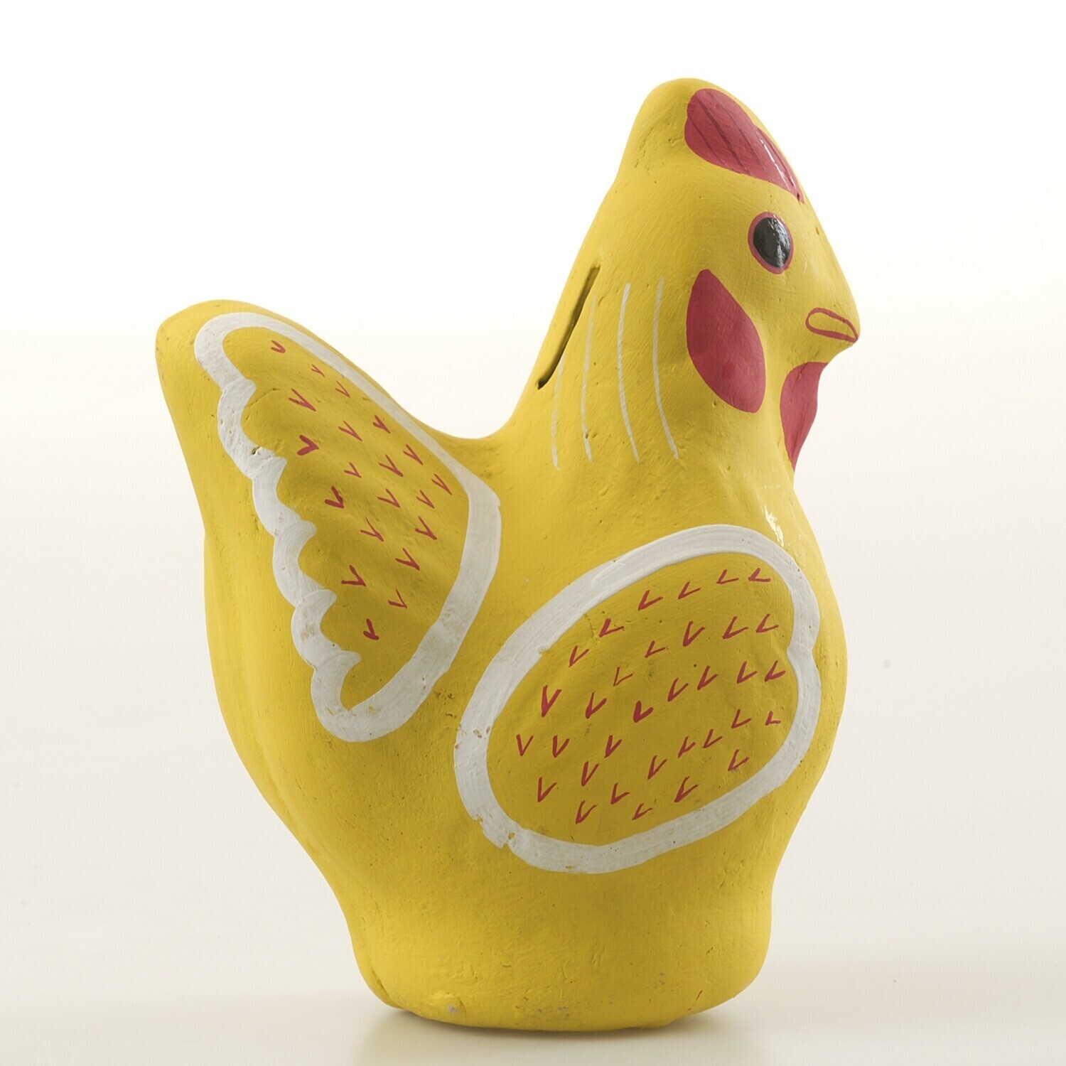 Aardewerken spaarpot in de vorm van een zittende kip
