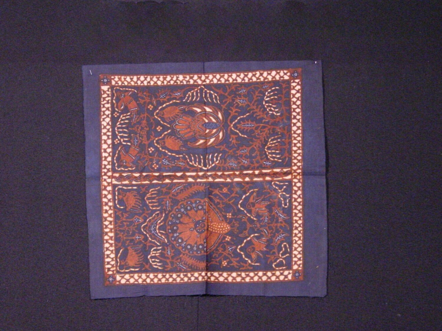 Gebatikte doek waarvan een theemuts gemaakt kan worden