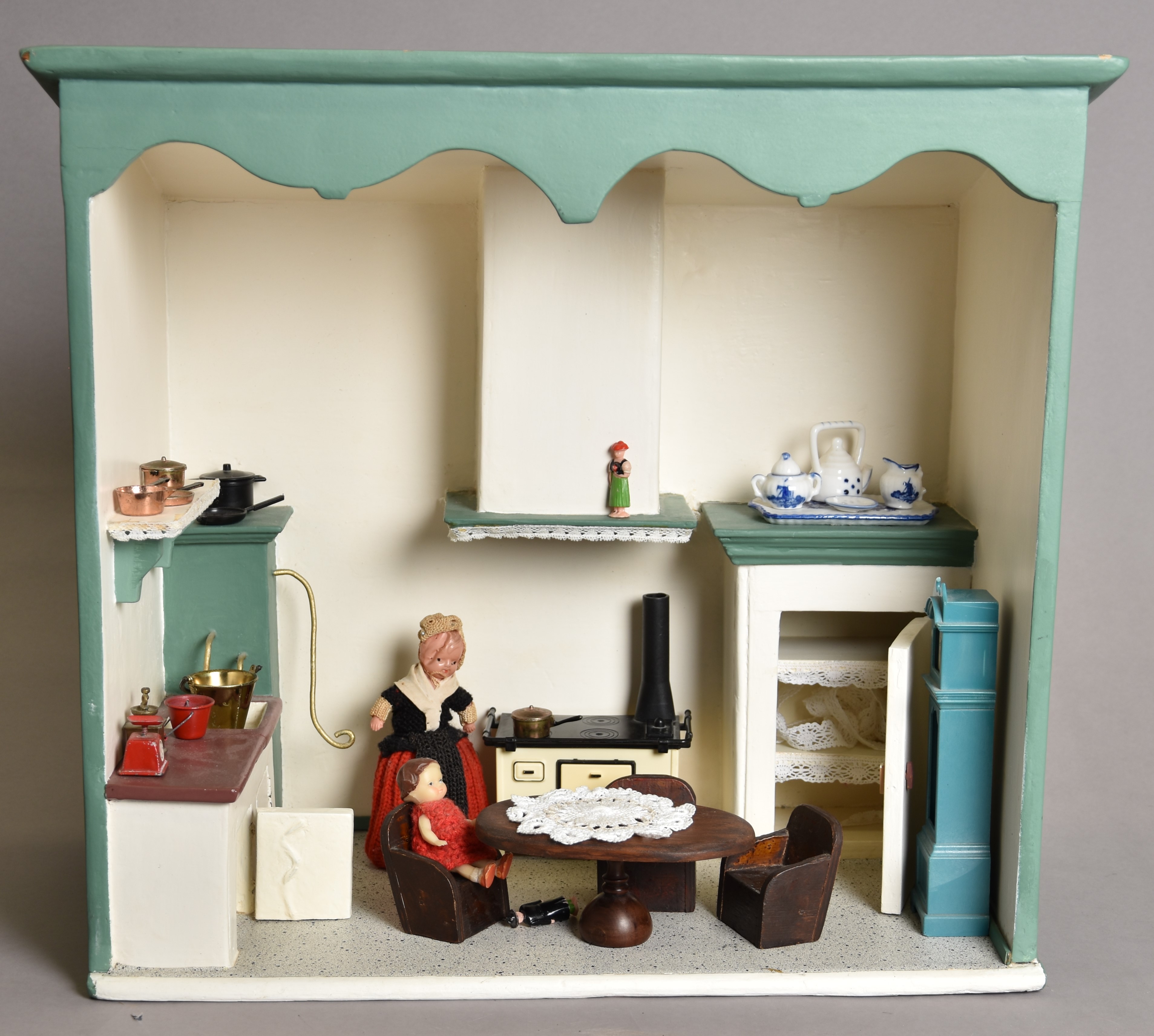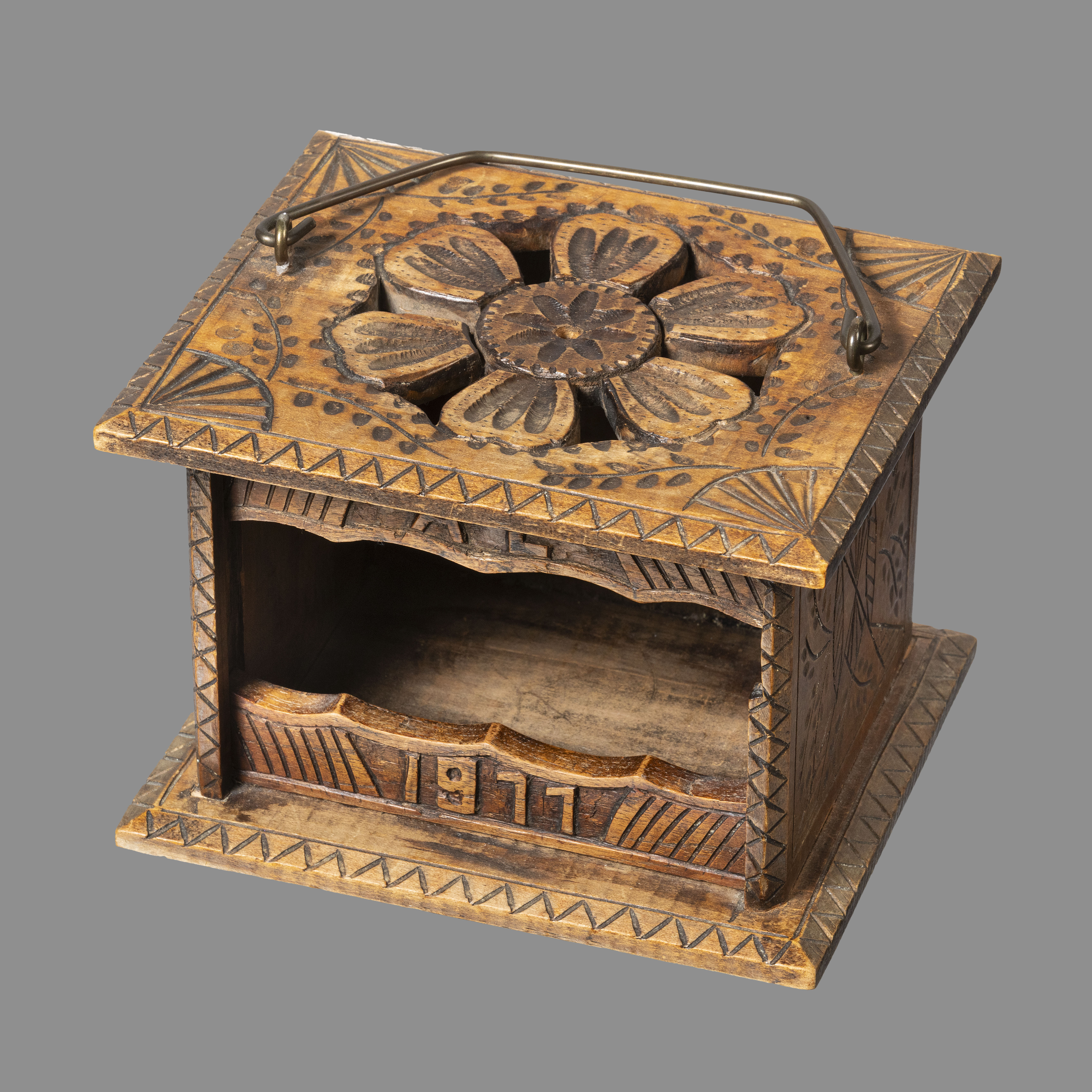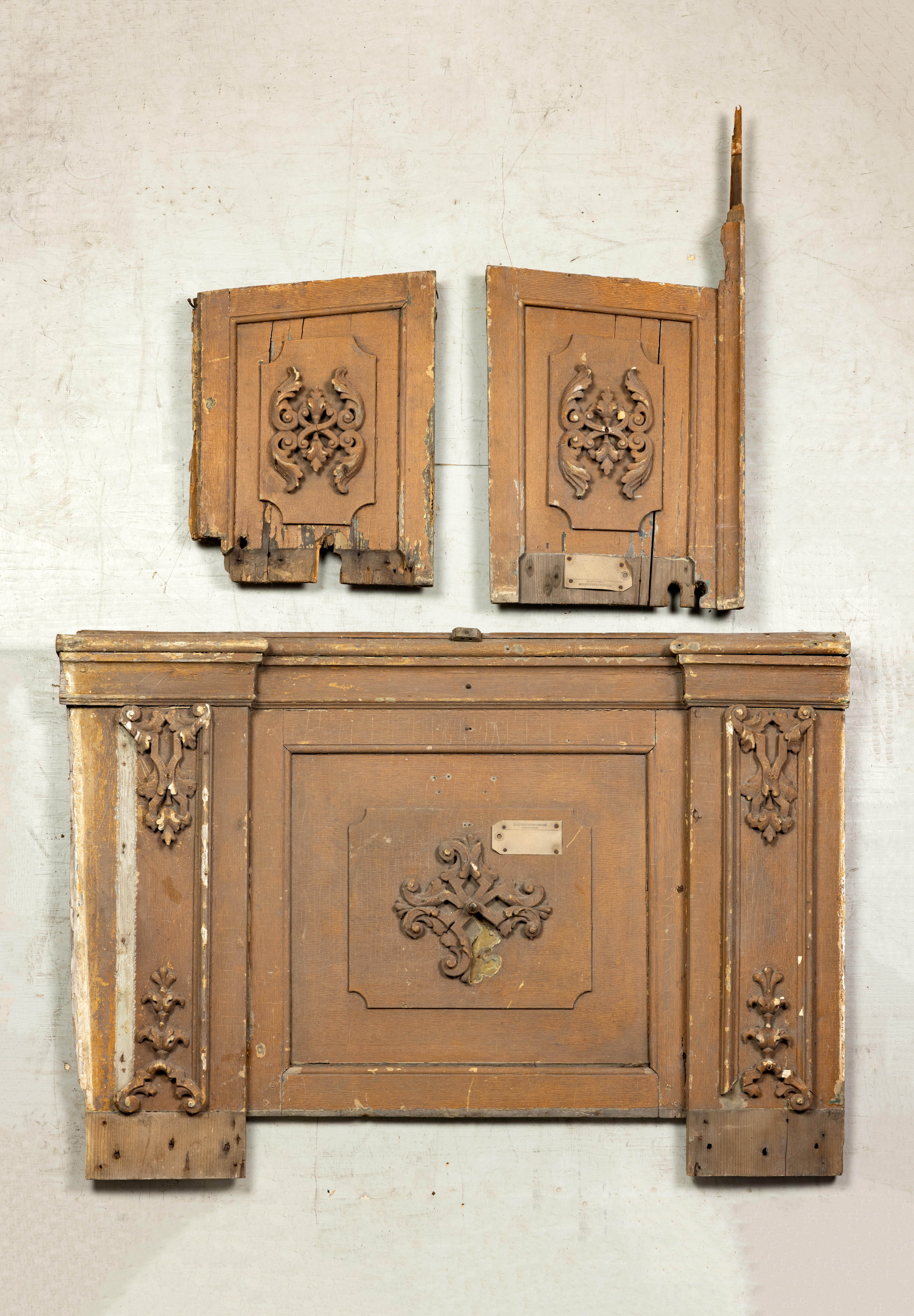 Ensemble huisraad met houtsnijwerk versiering, met n...