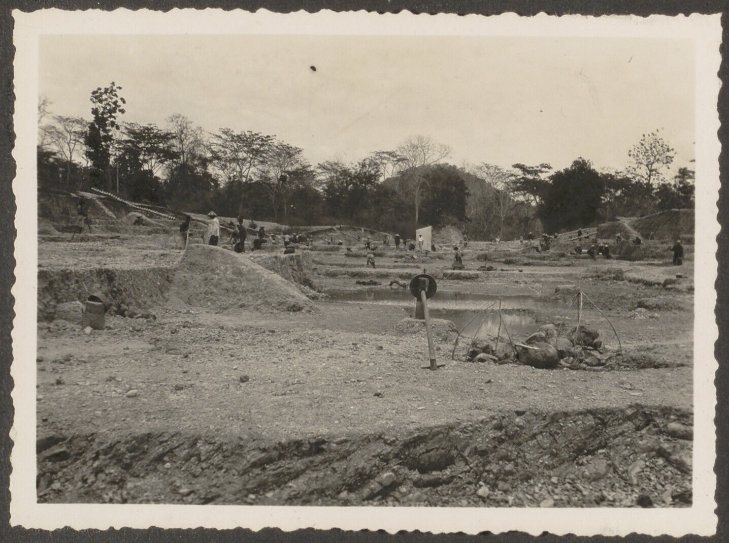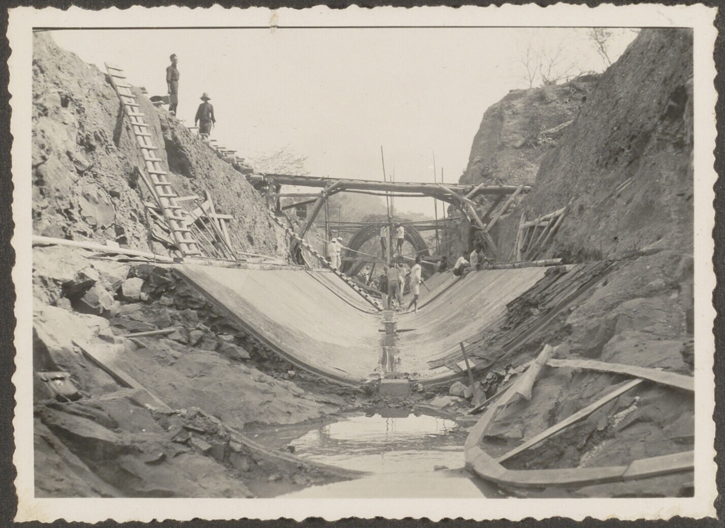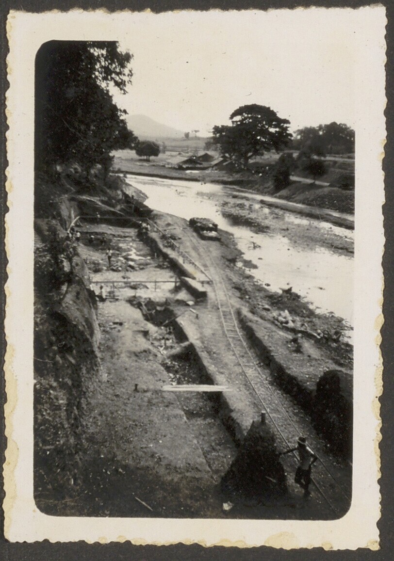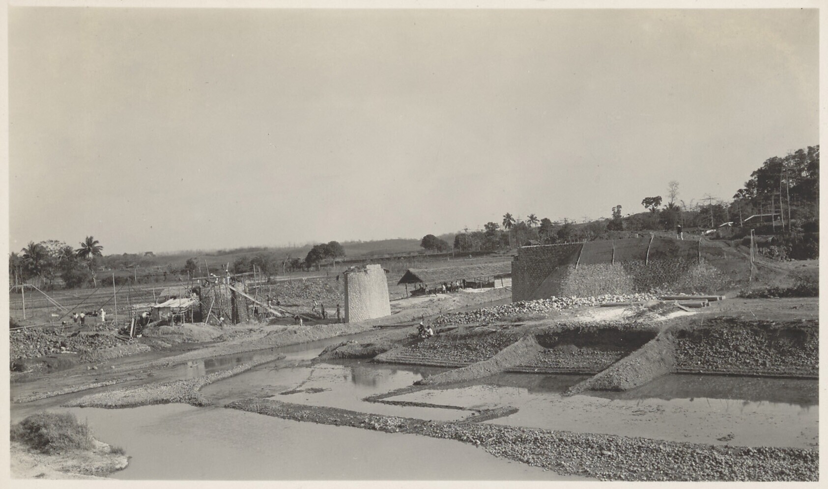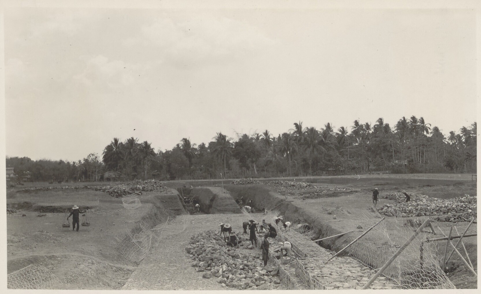 Aanleg van overlaat bij Kratjak door Javaanse arbeiders