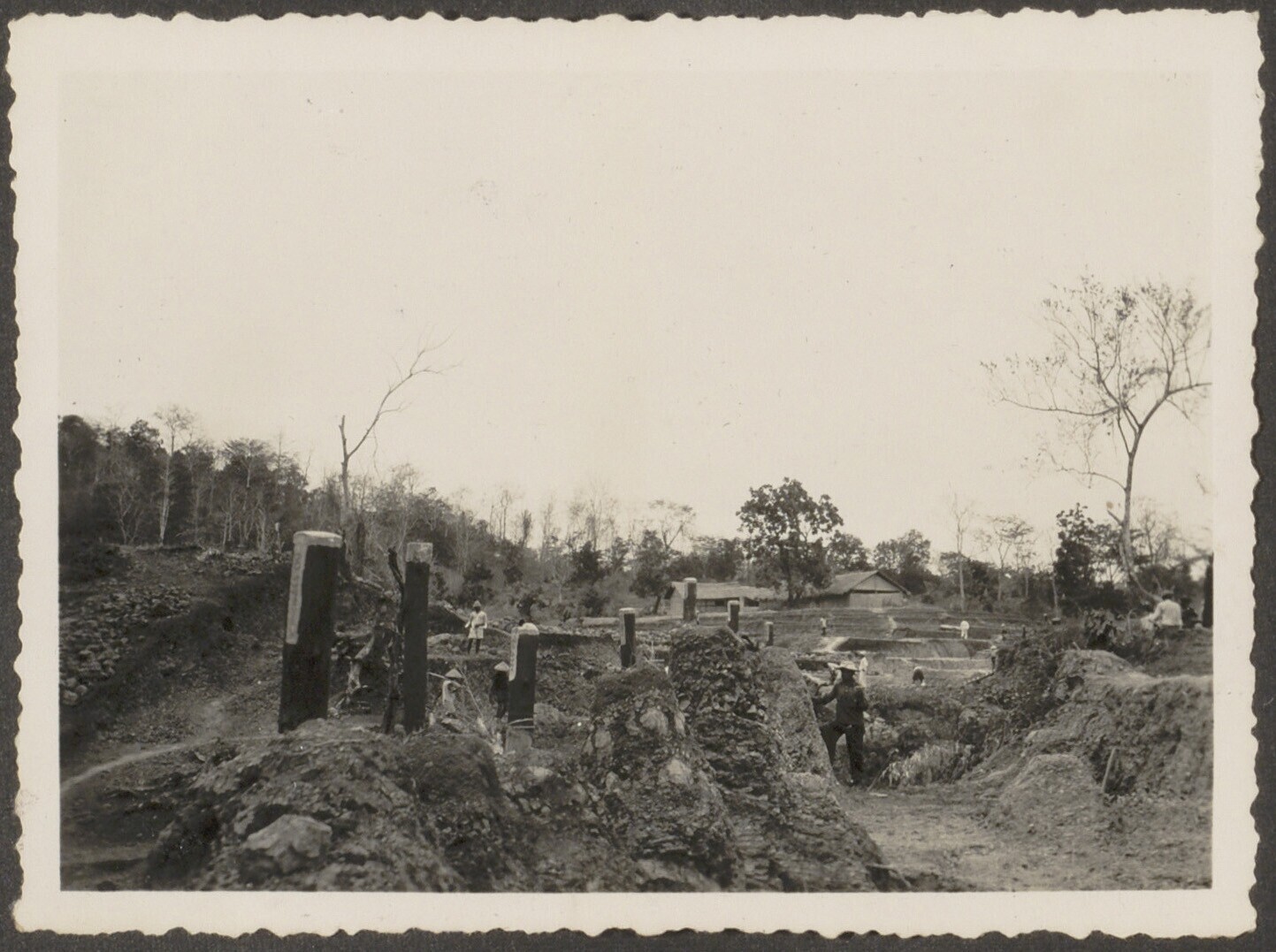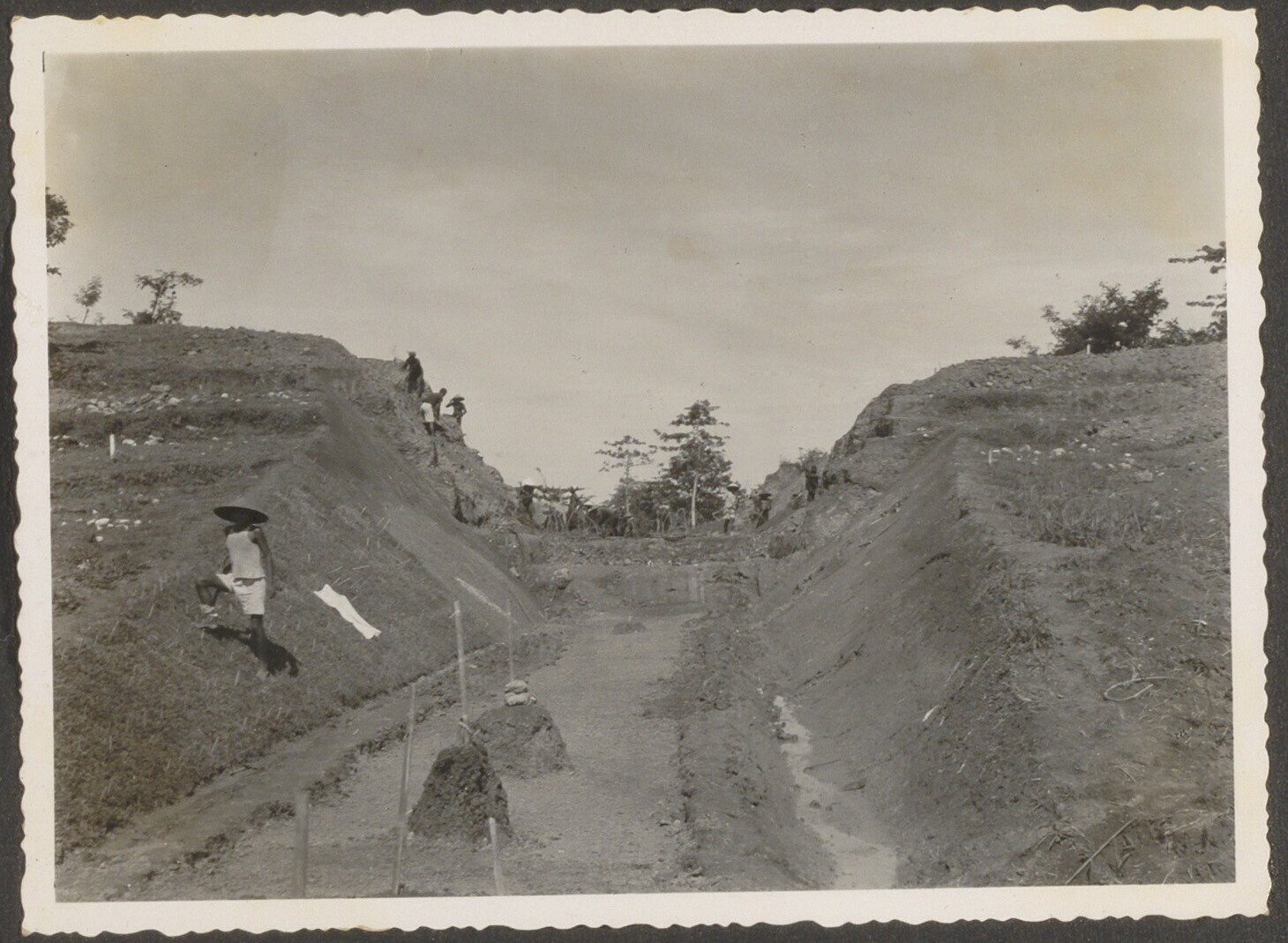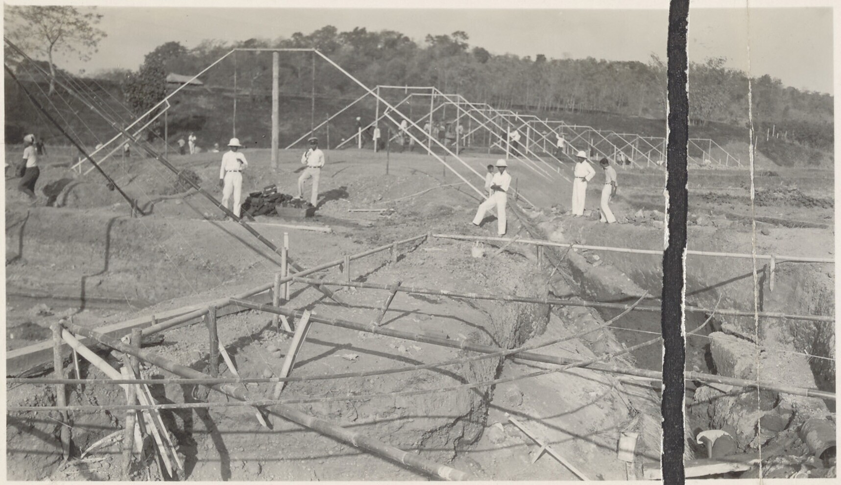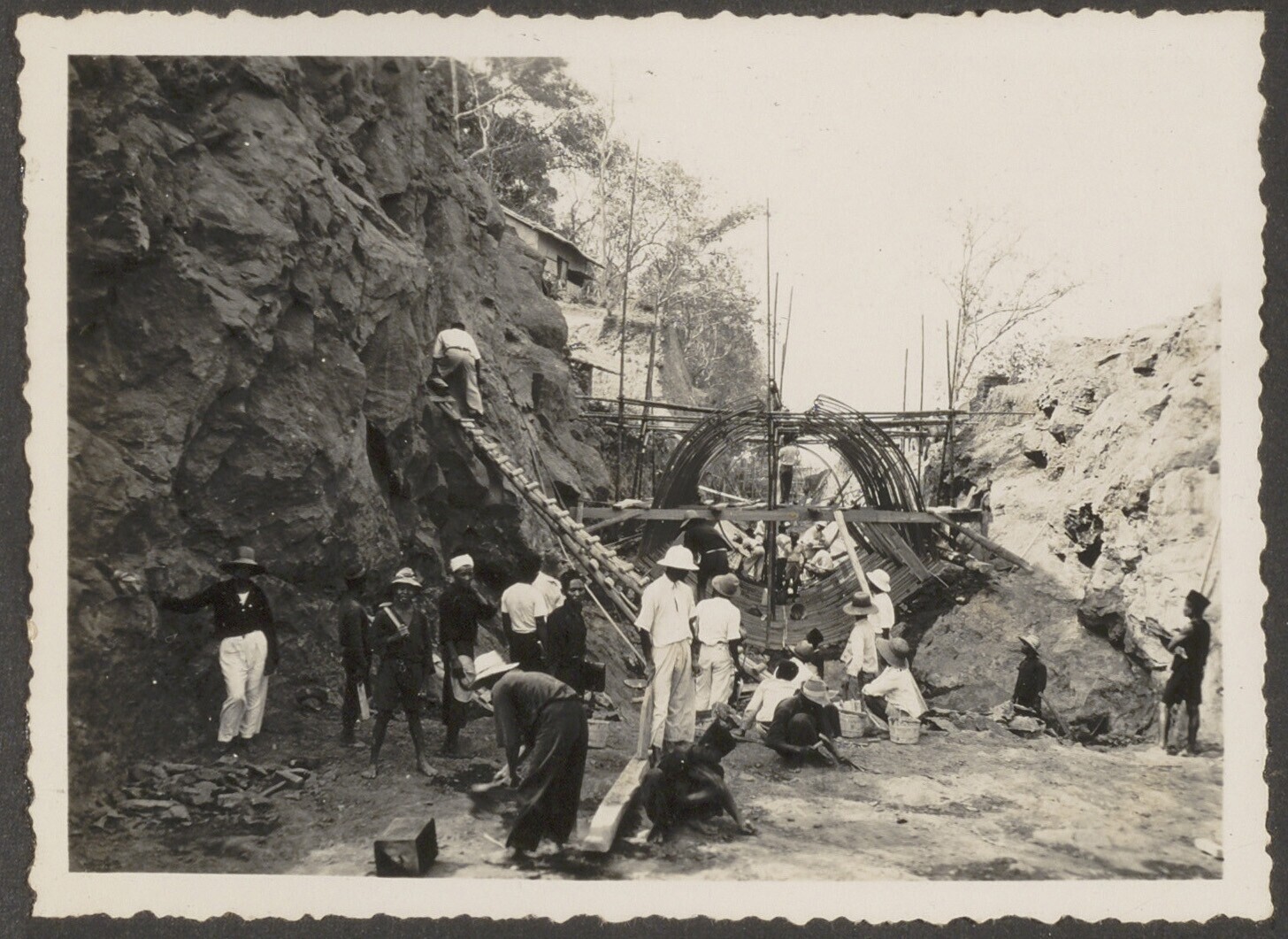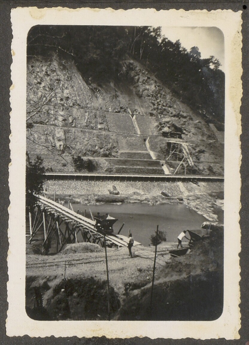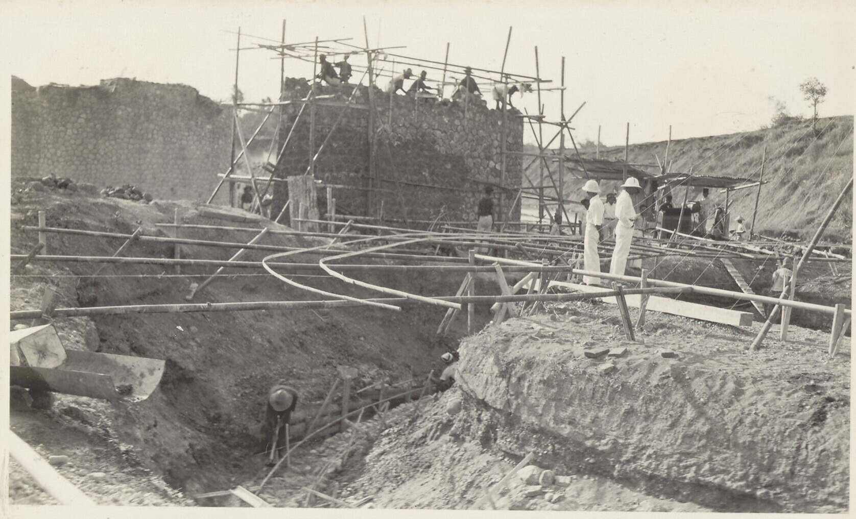 Aanleg van overlaat bij Kratjak door Javaanse arbeiders