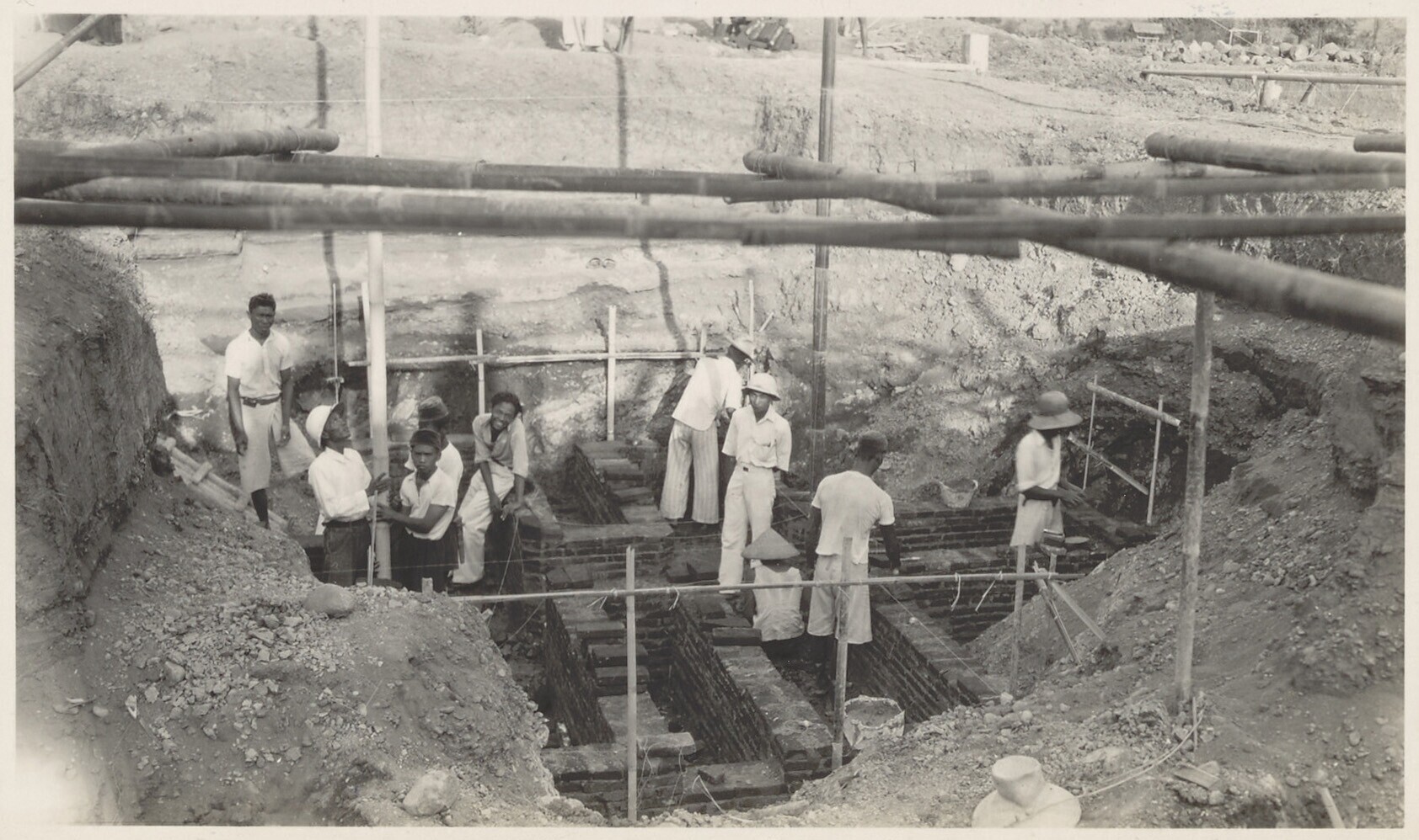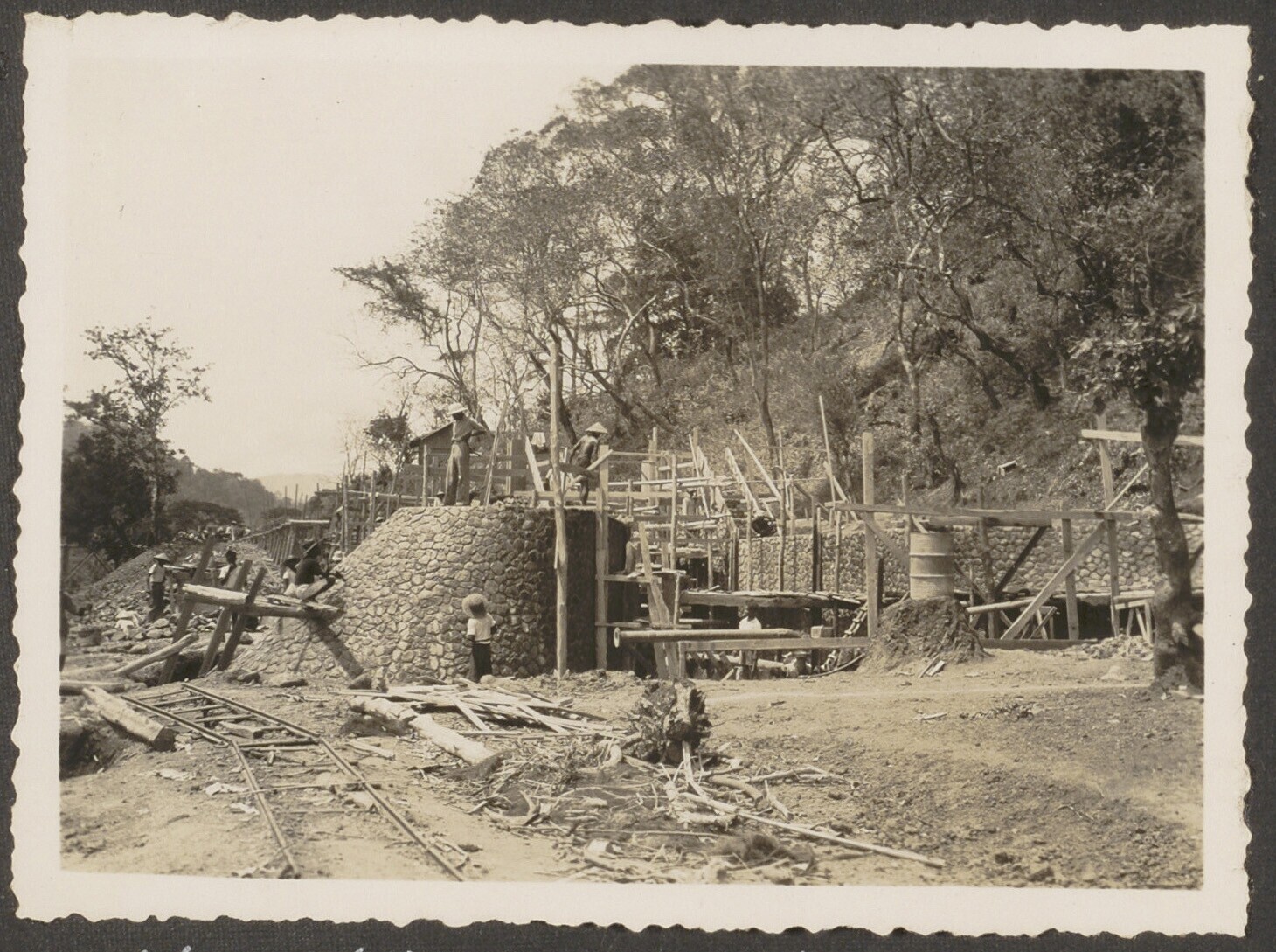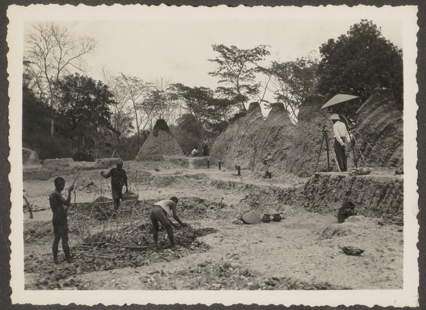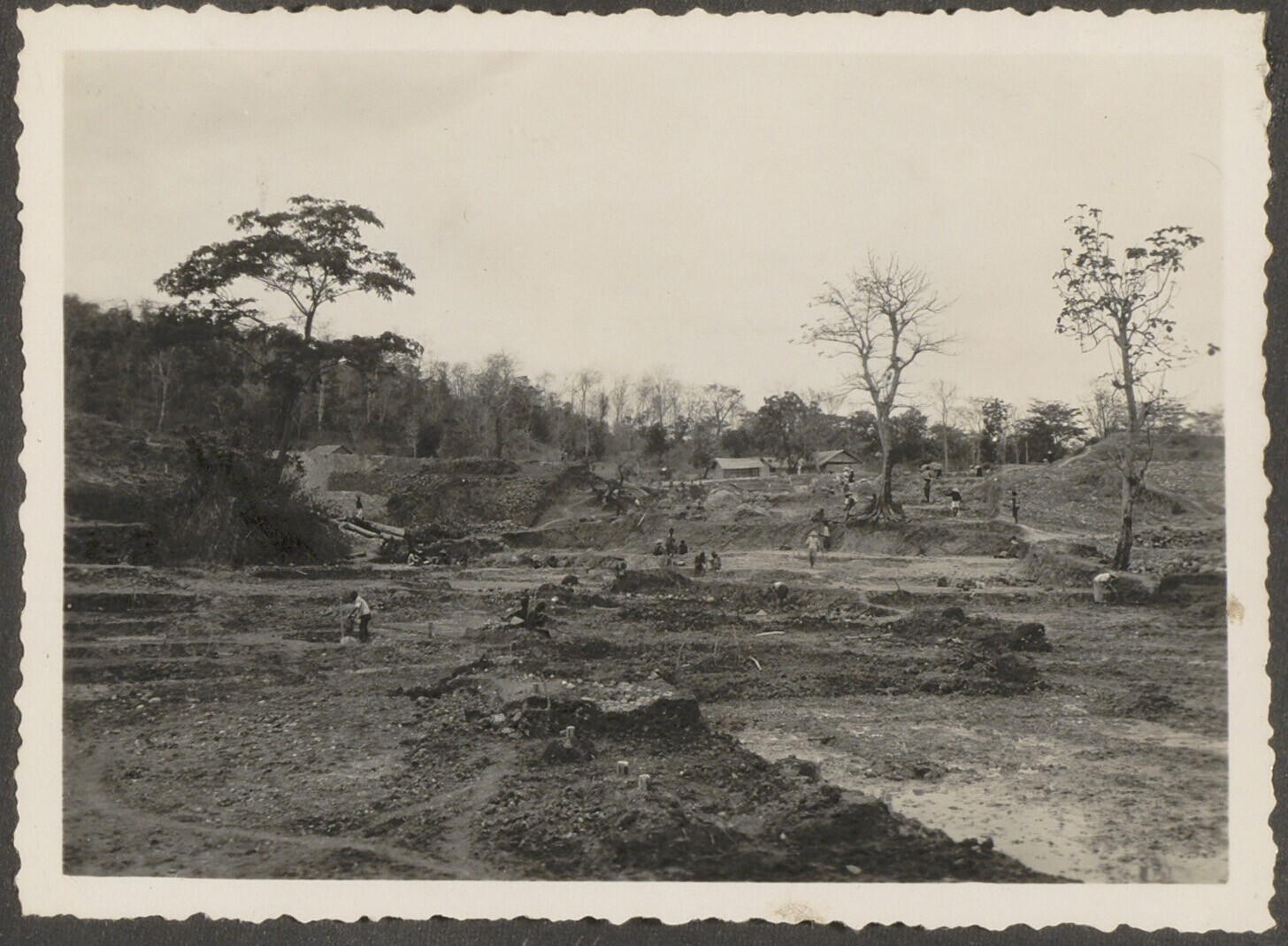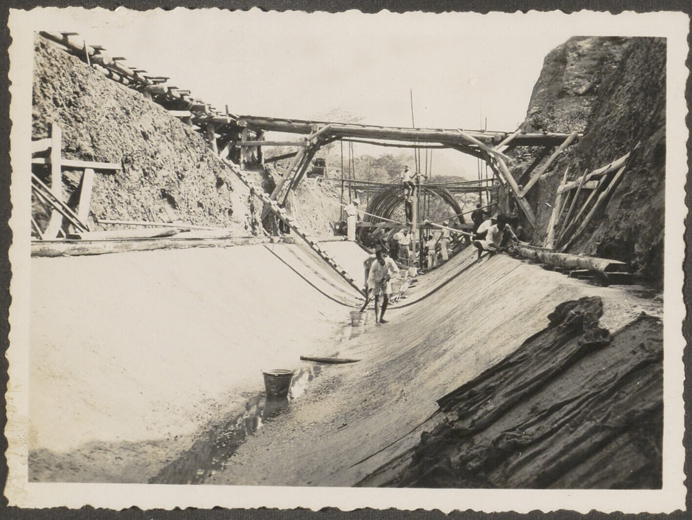 Aanleg van overlaat bij Kratjak door Javaanse arbeiders