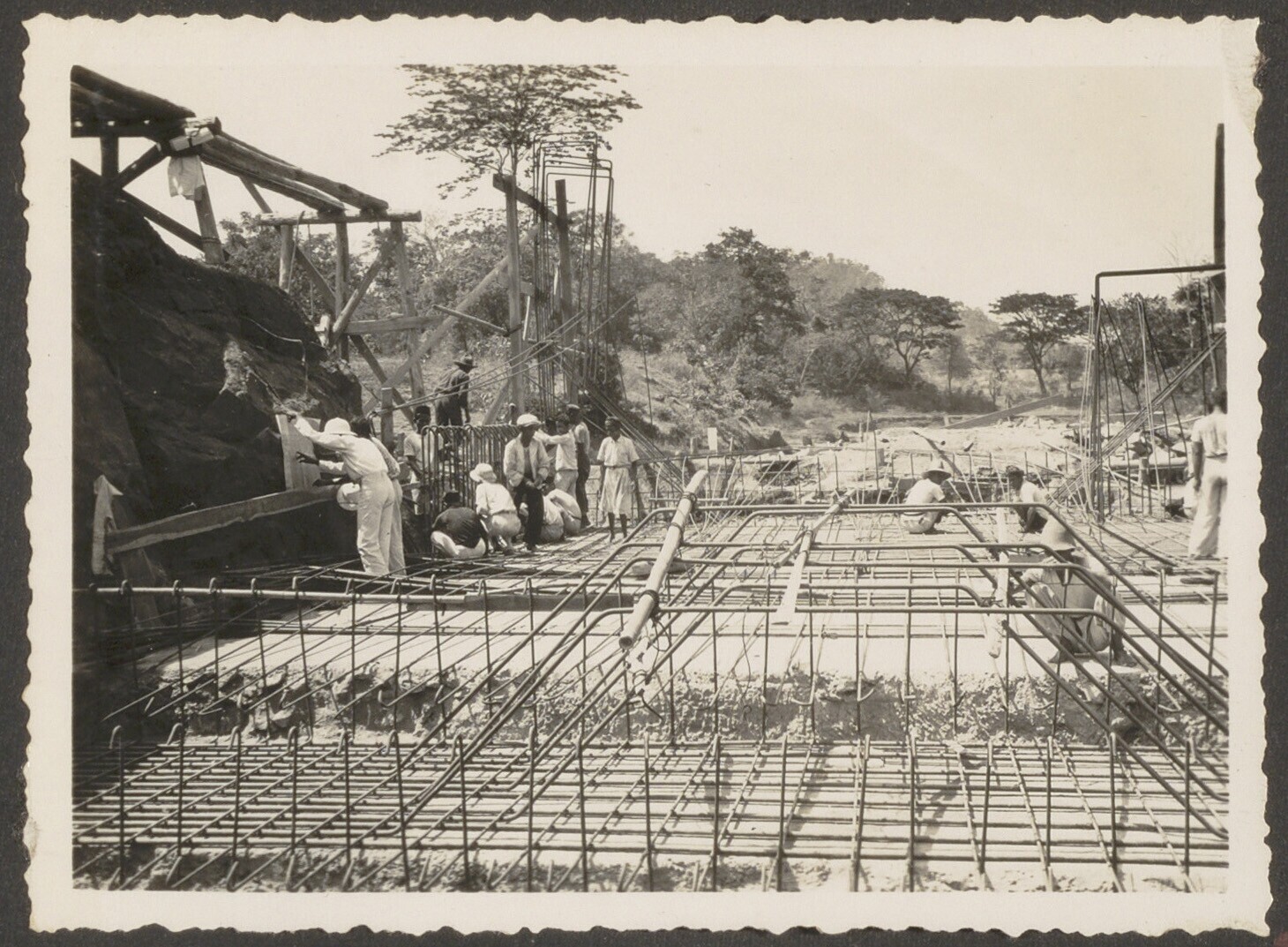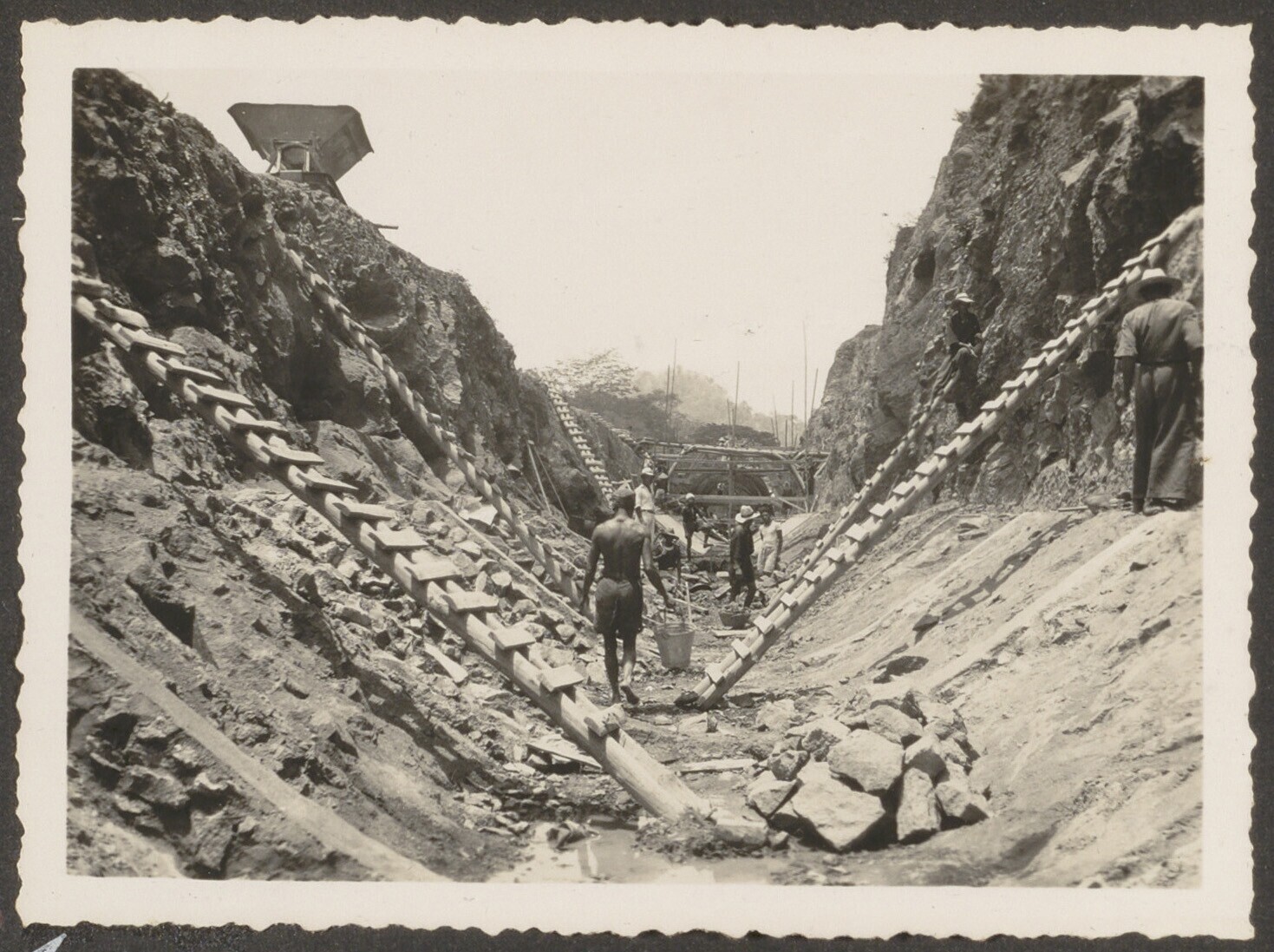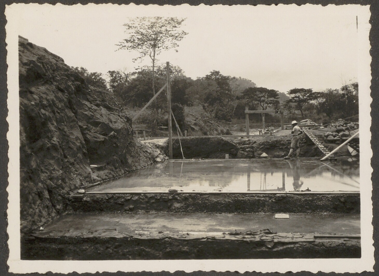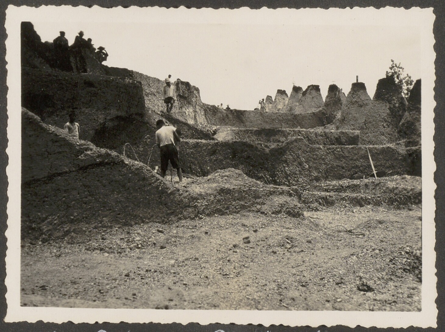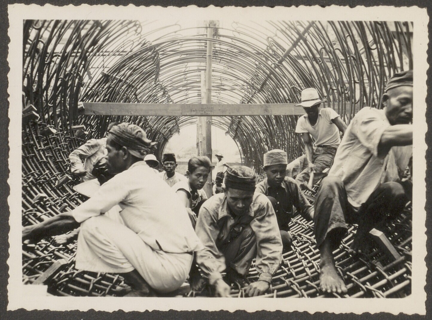 Aanleg van overlaat bij Kratjak door Javaanse arbeiders