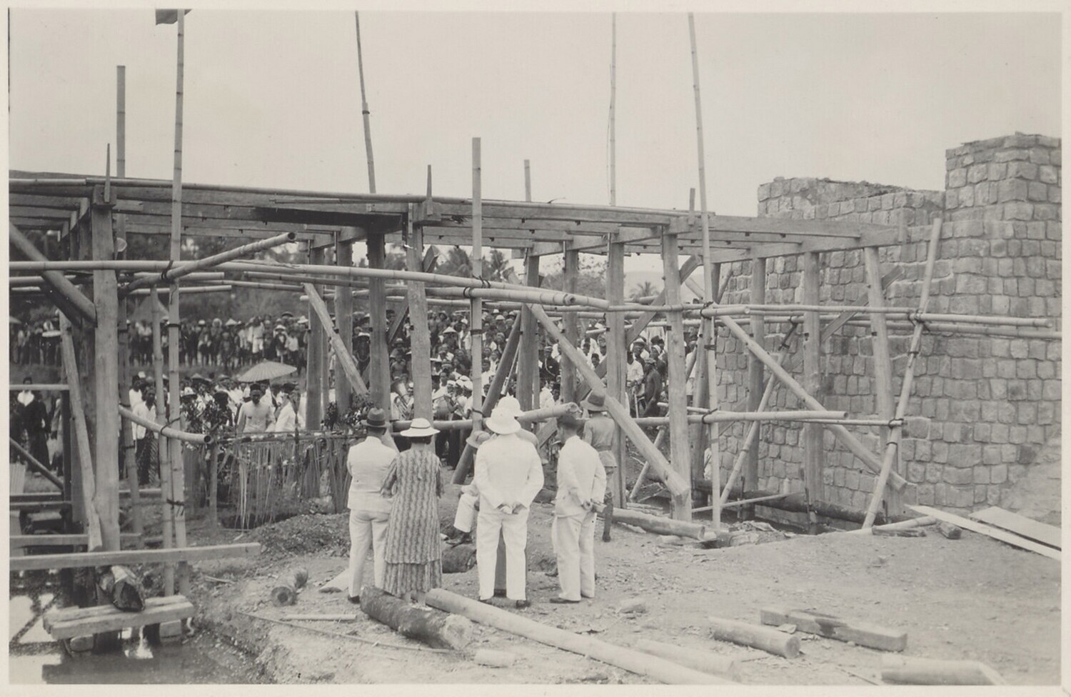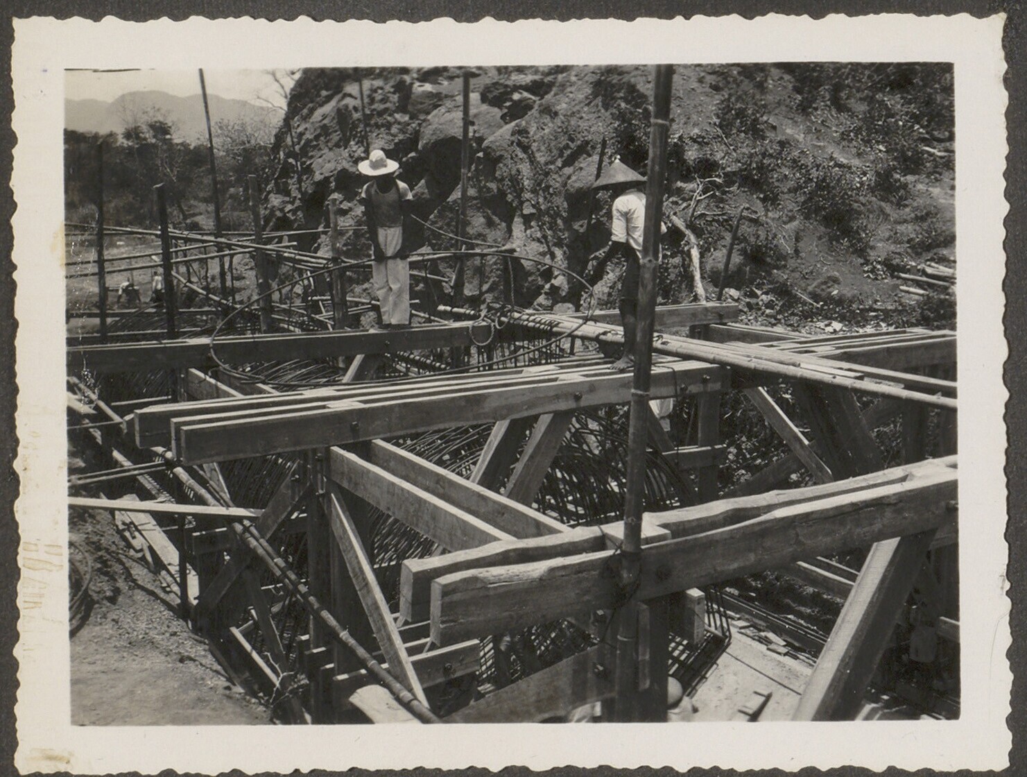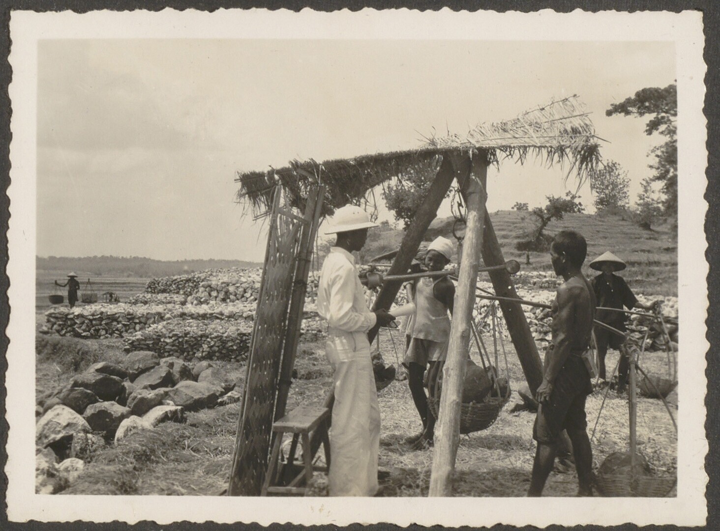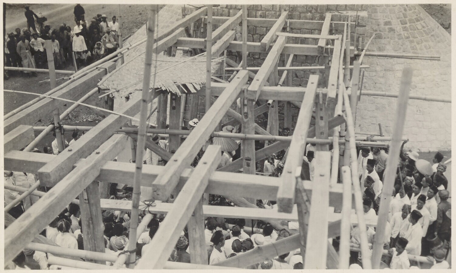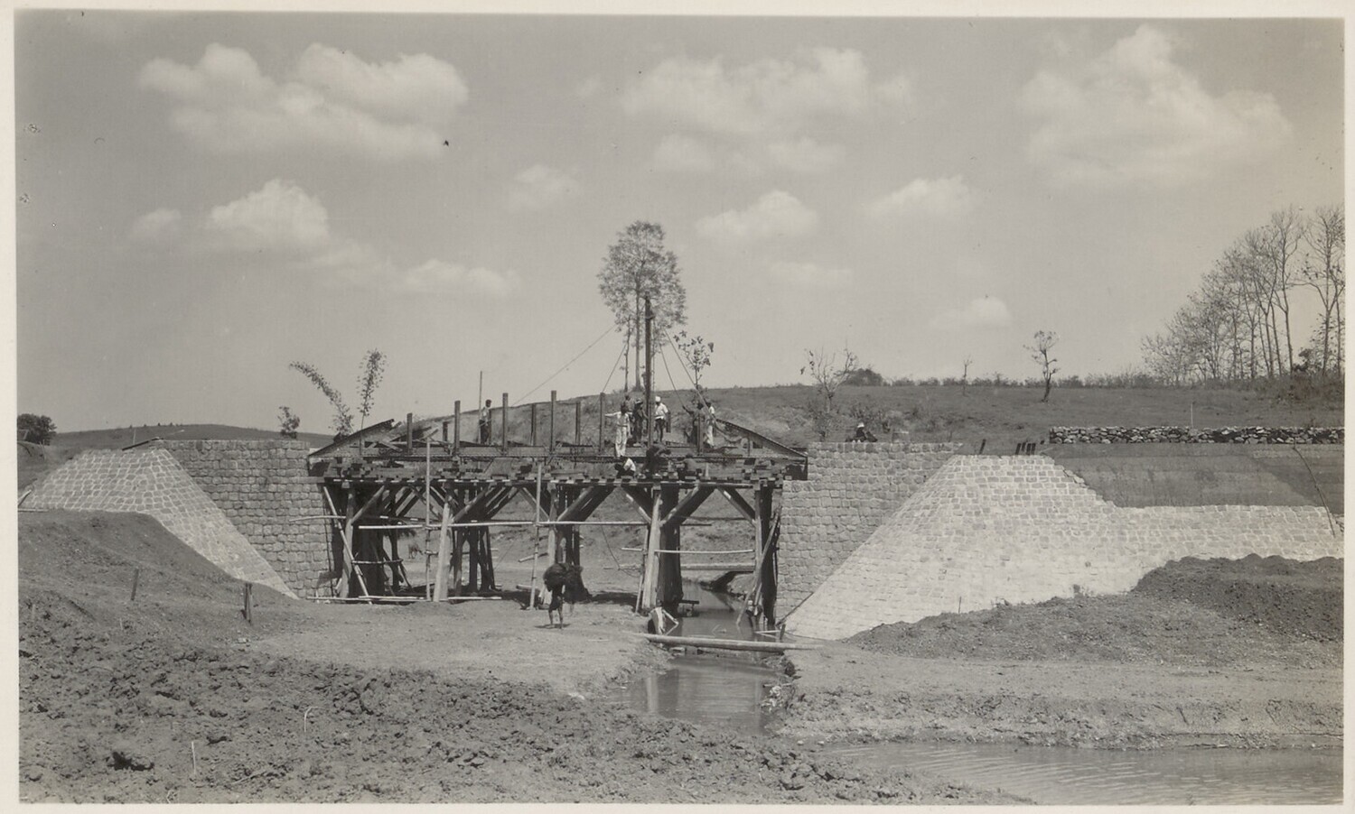 Aanleg van overlaat bij Kratjak door Javaanse arbeiders