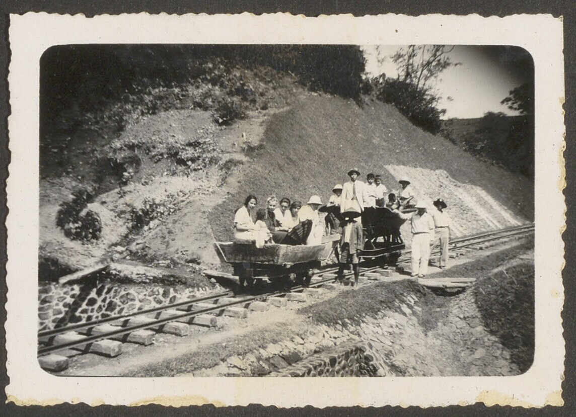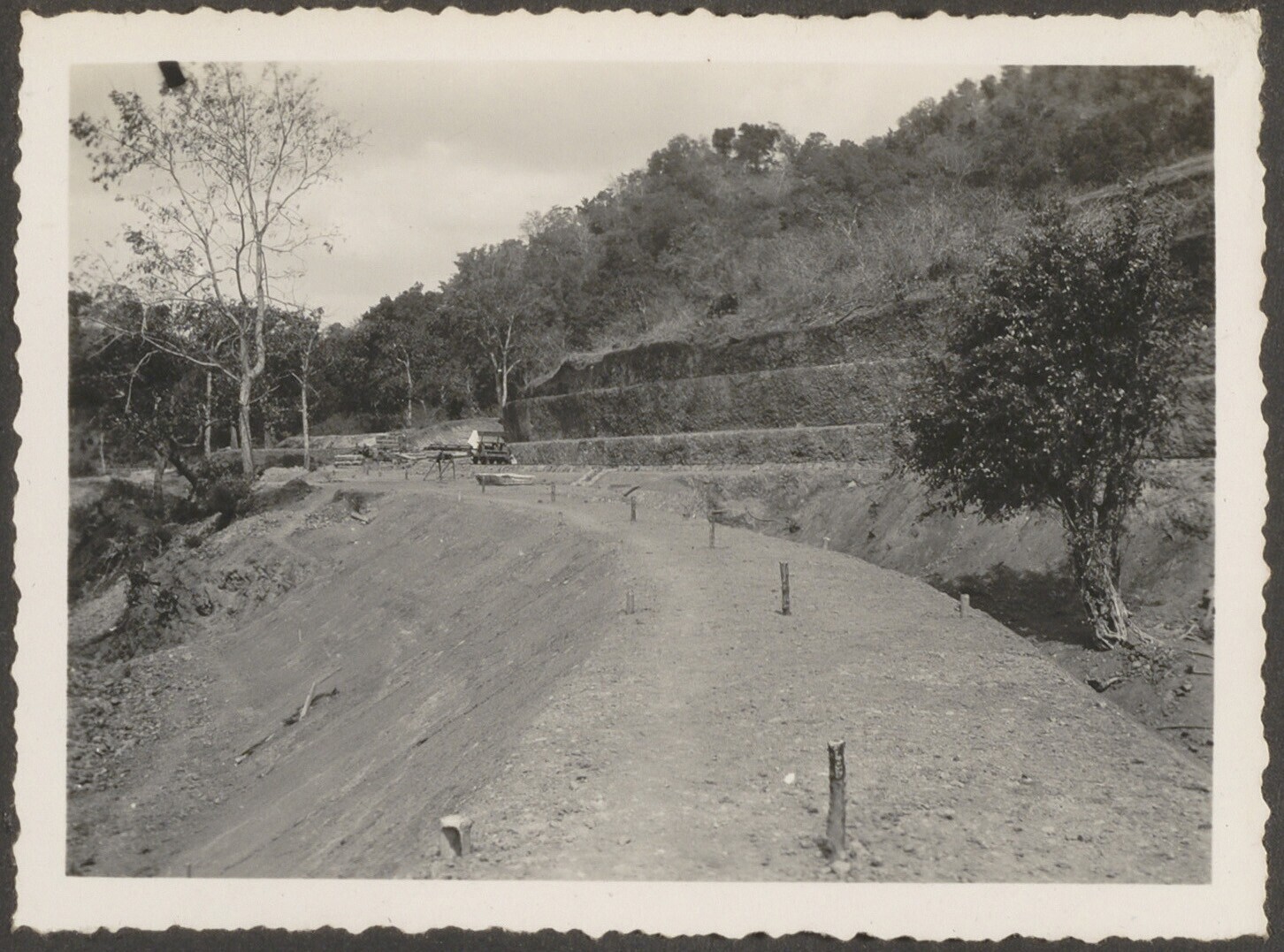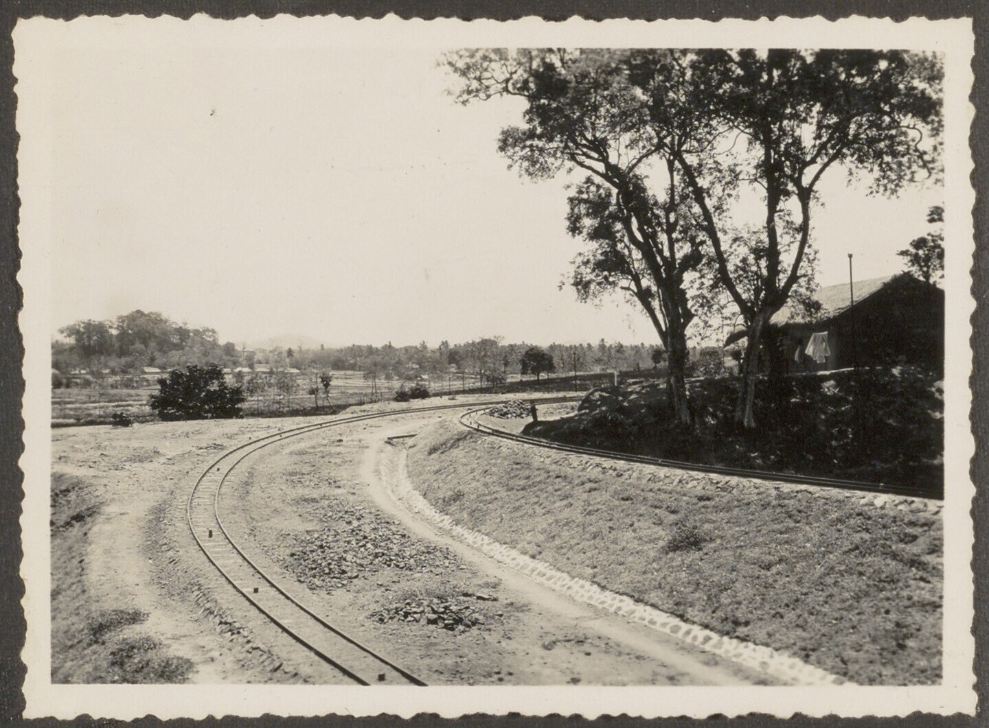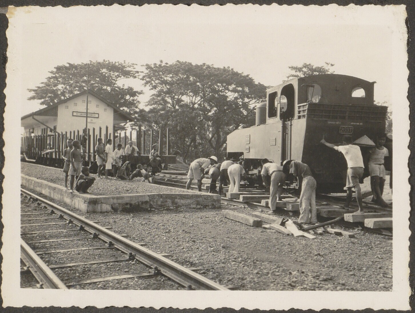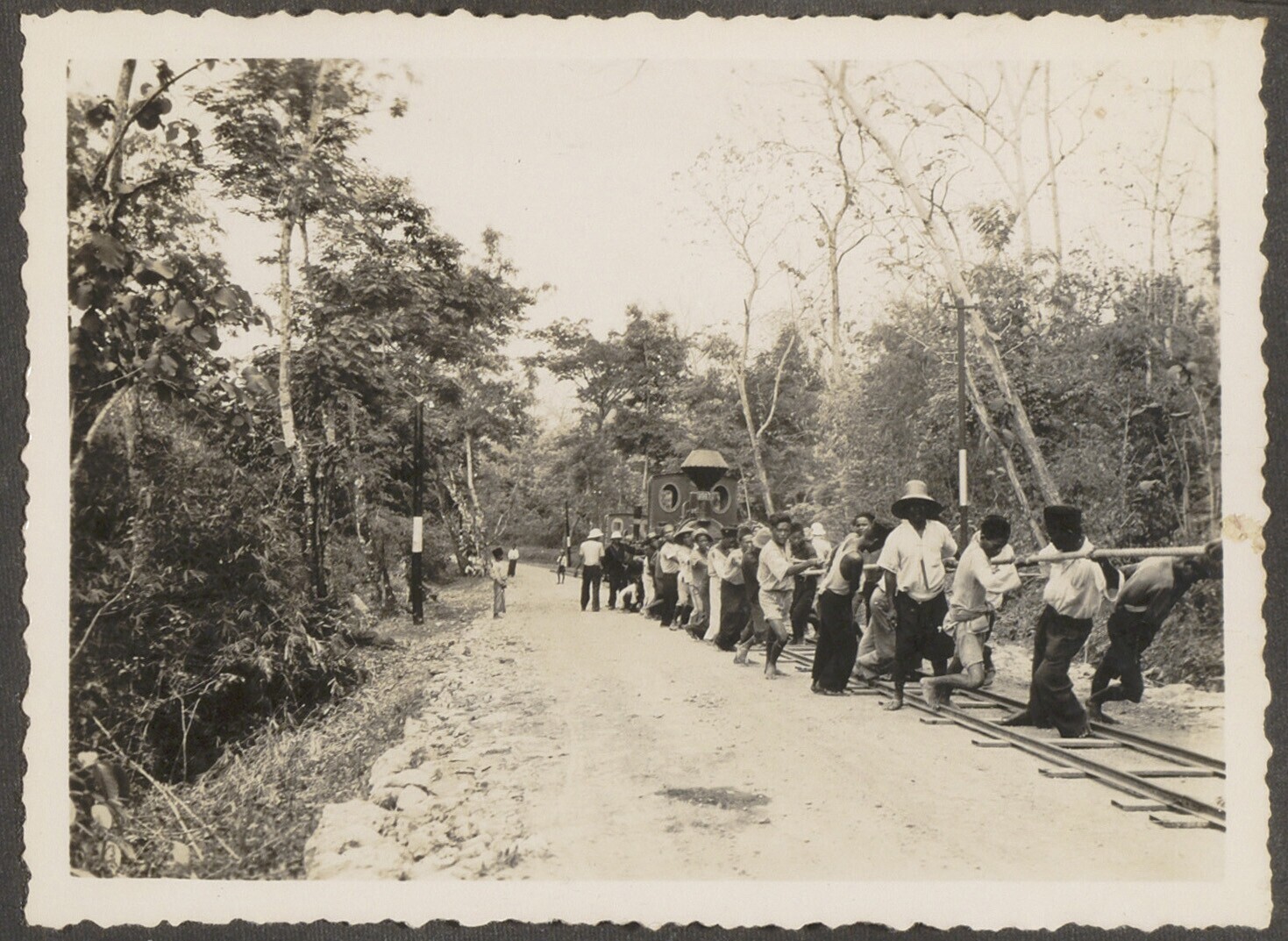 Aanleg van een spoorbaan door Javaanse arbeiders