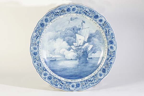 Herdenkingsbord VOC-schip met RMS-vlag