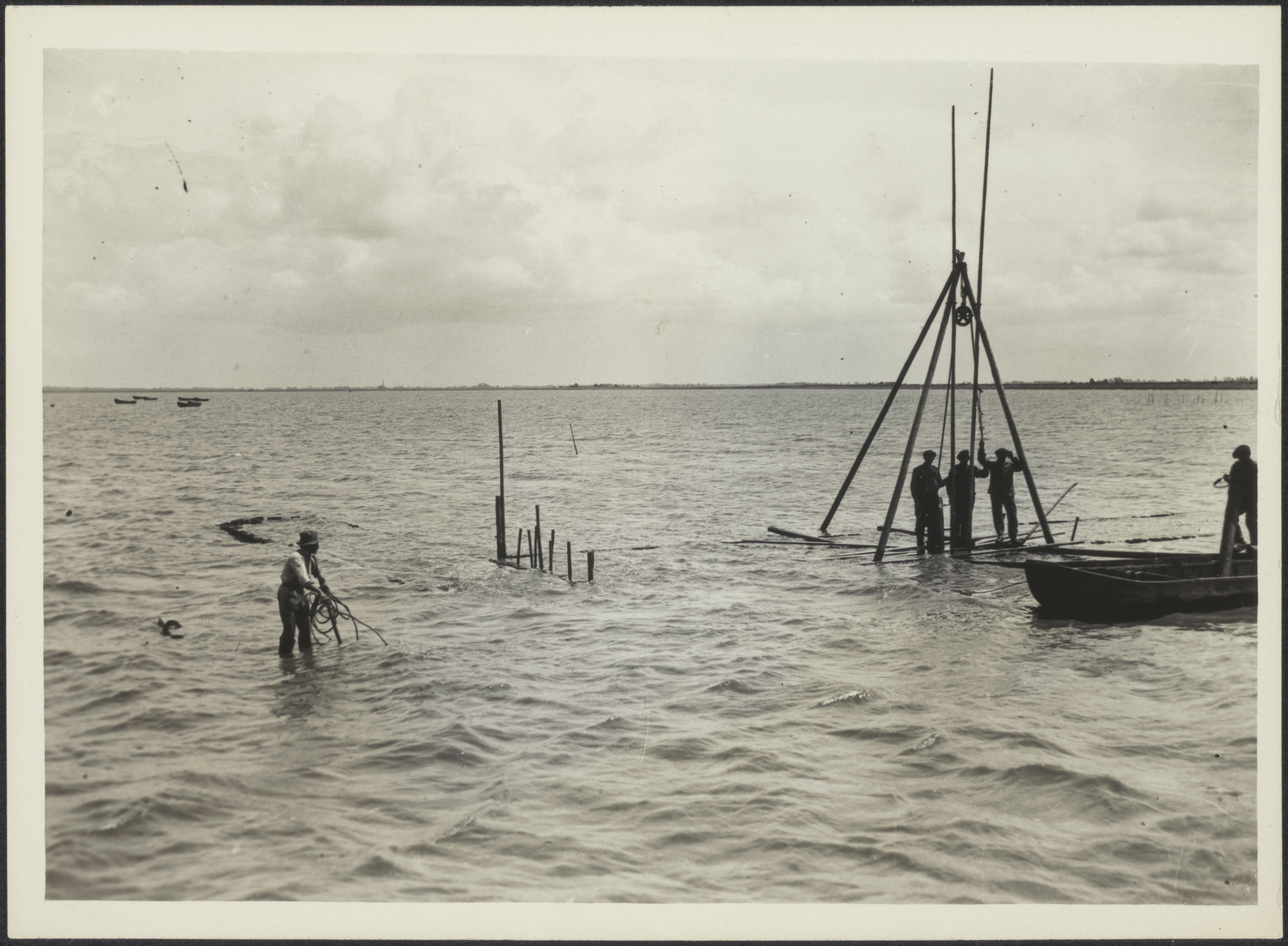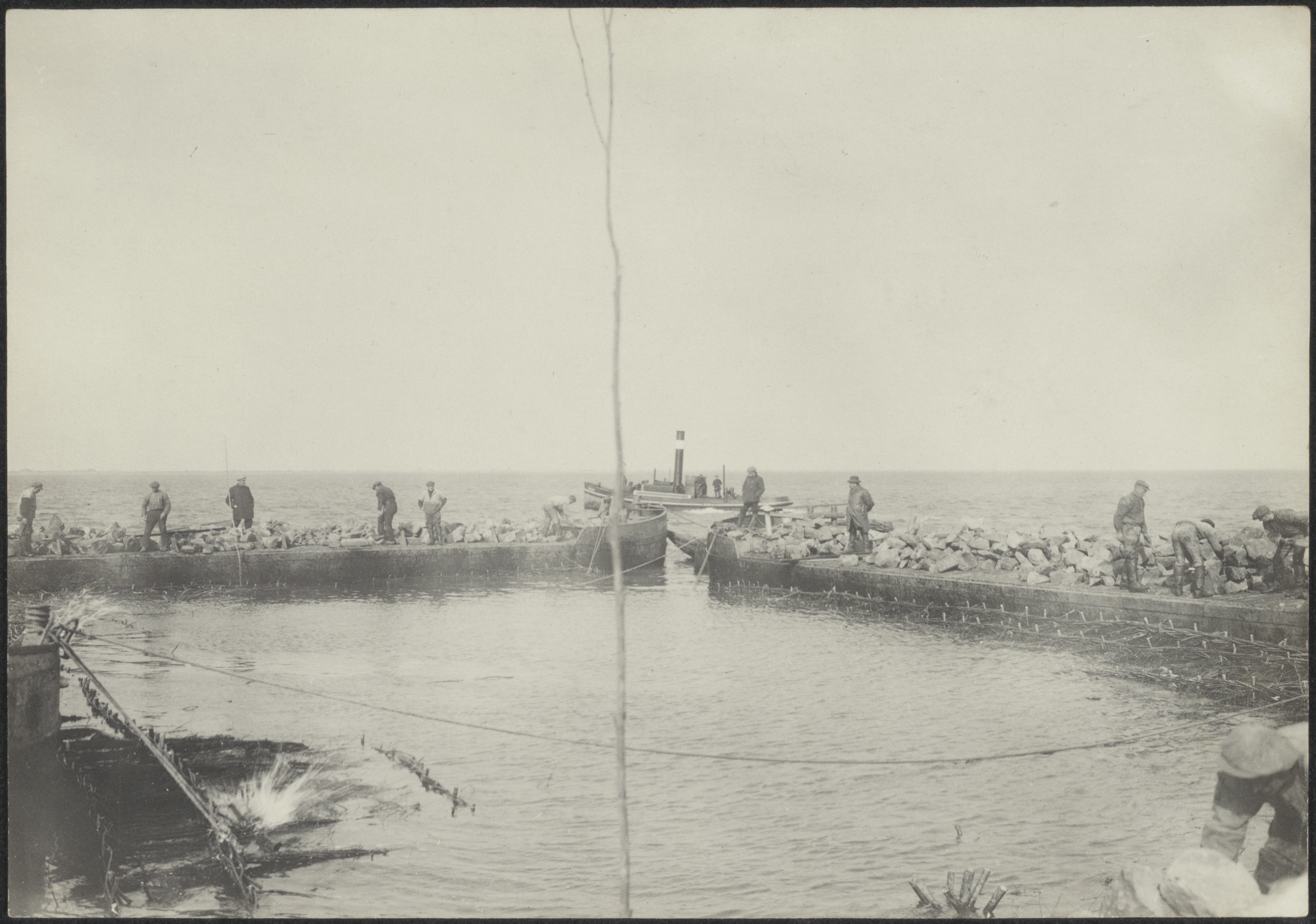 Arbeiders in zee bezig met werkzaamheden voor het ha...