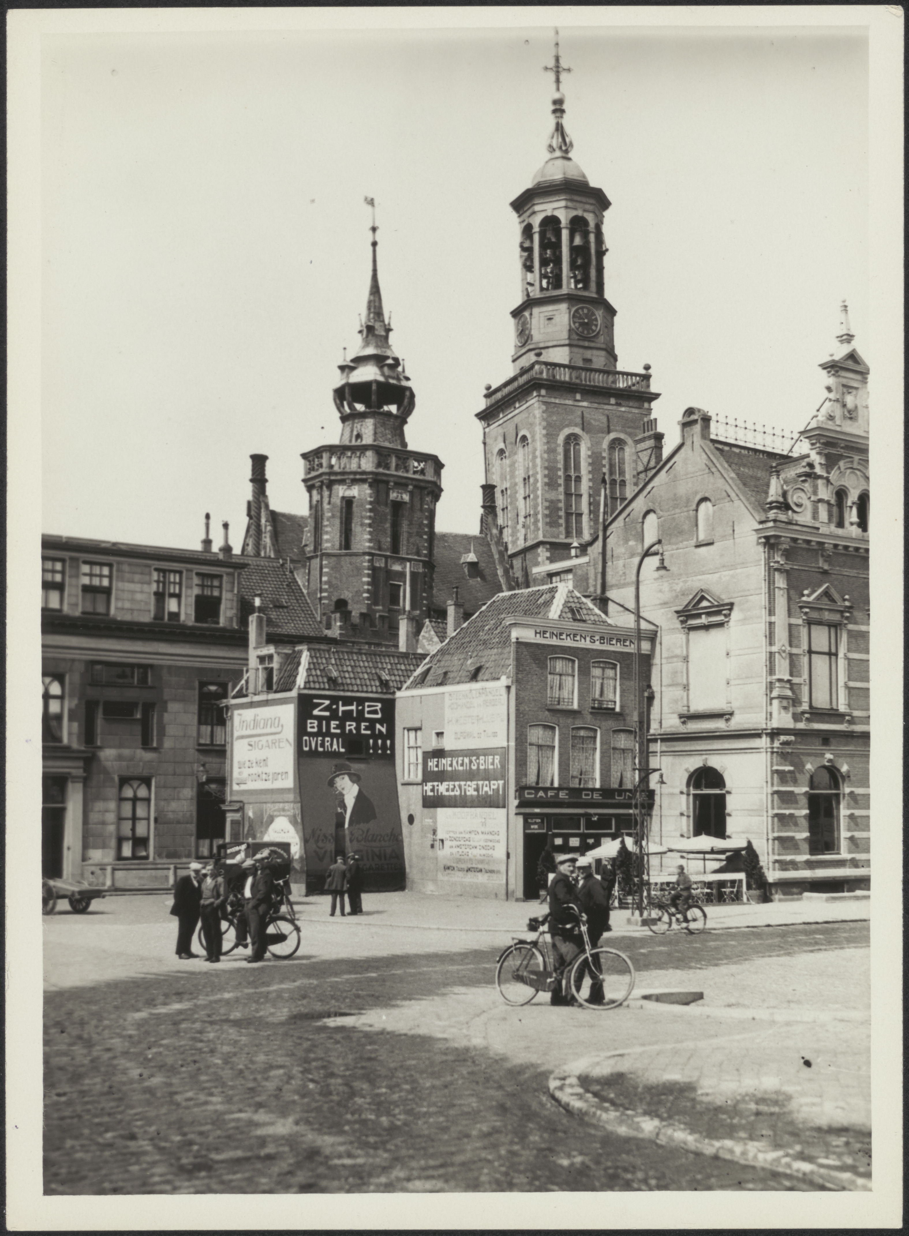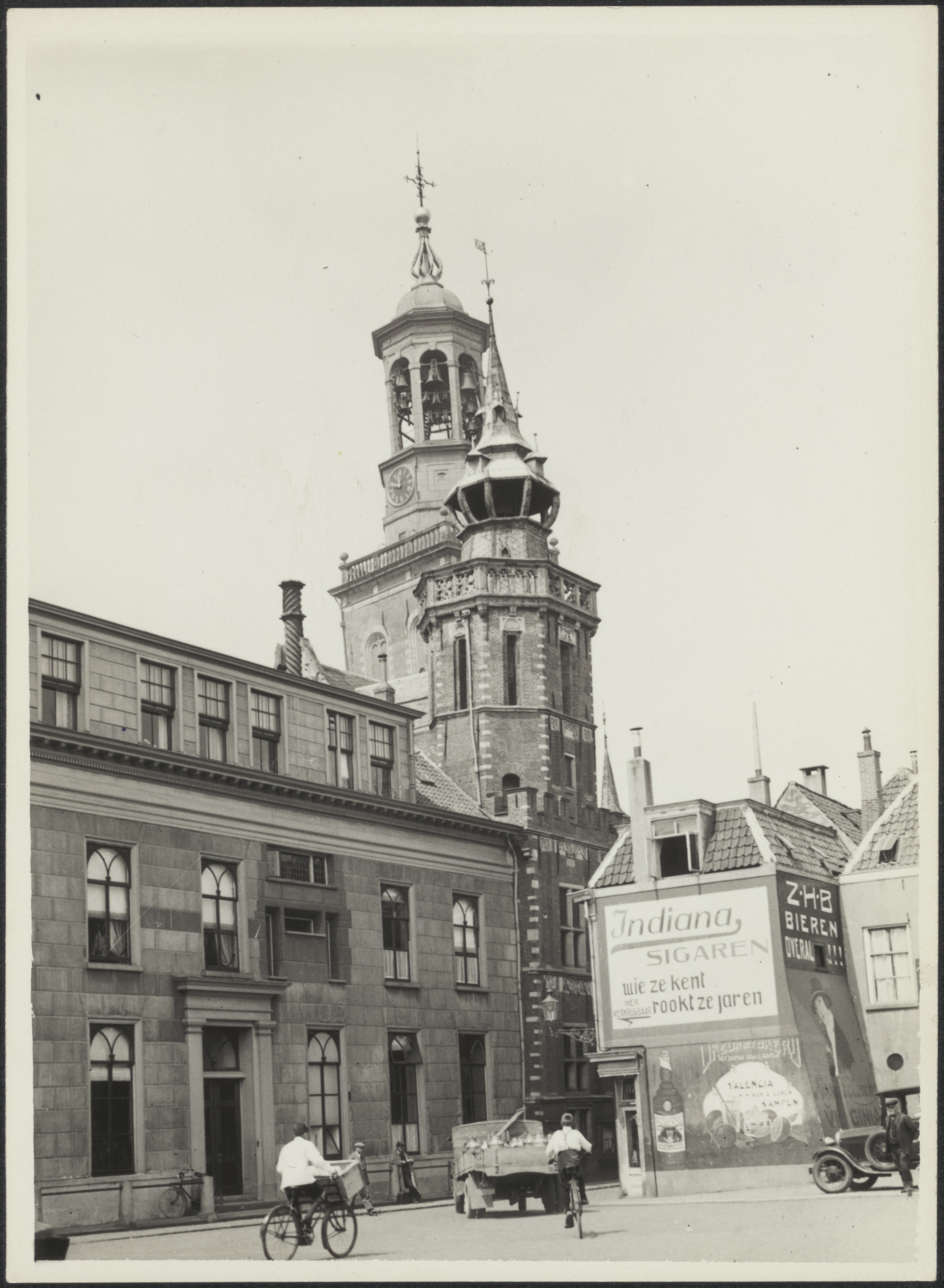 Stadsgezicht met de stadhuistoren en de Kamper toren
