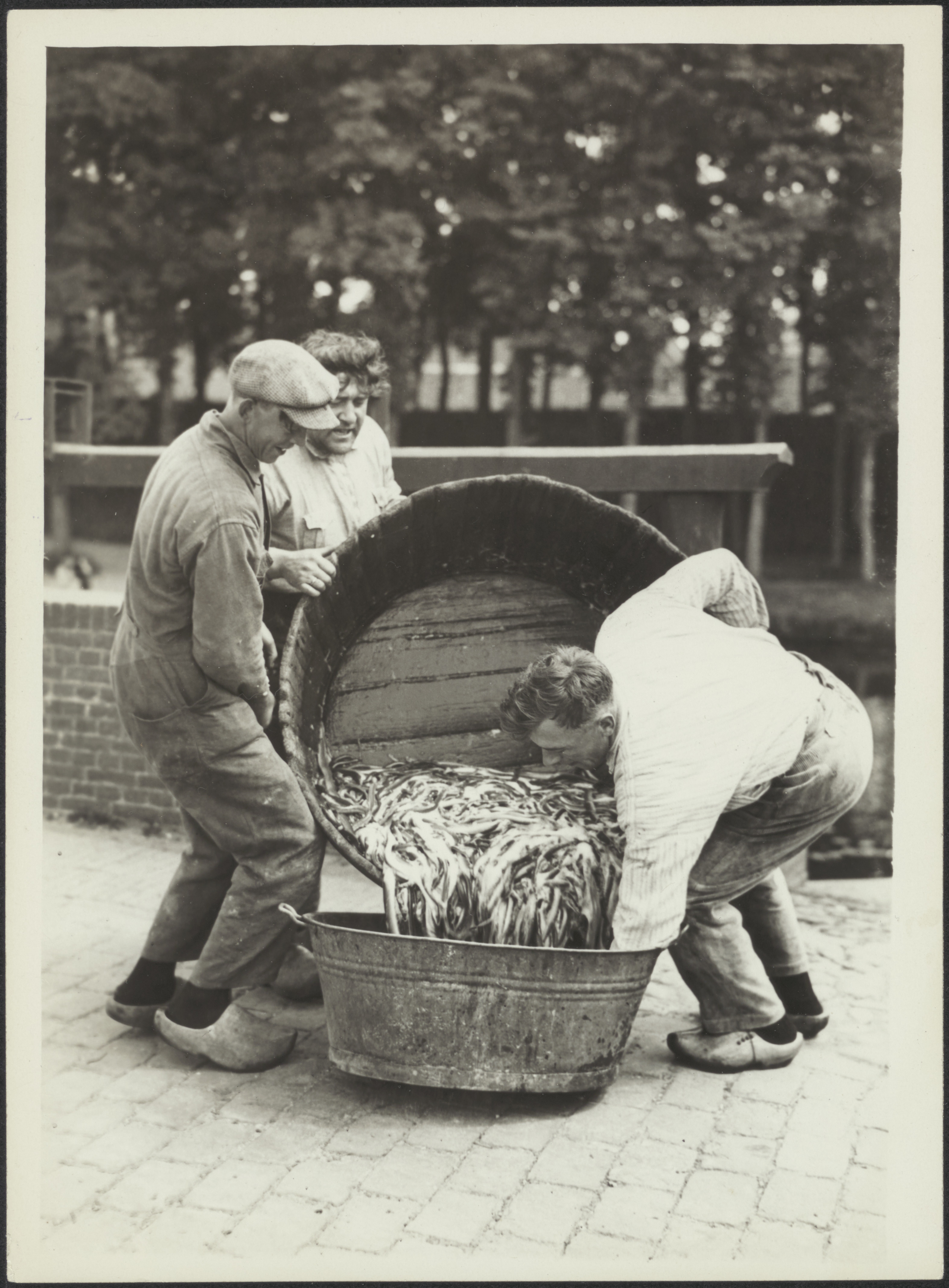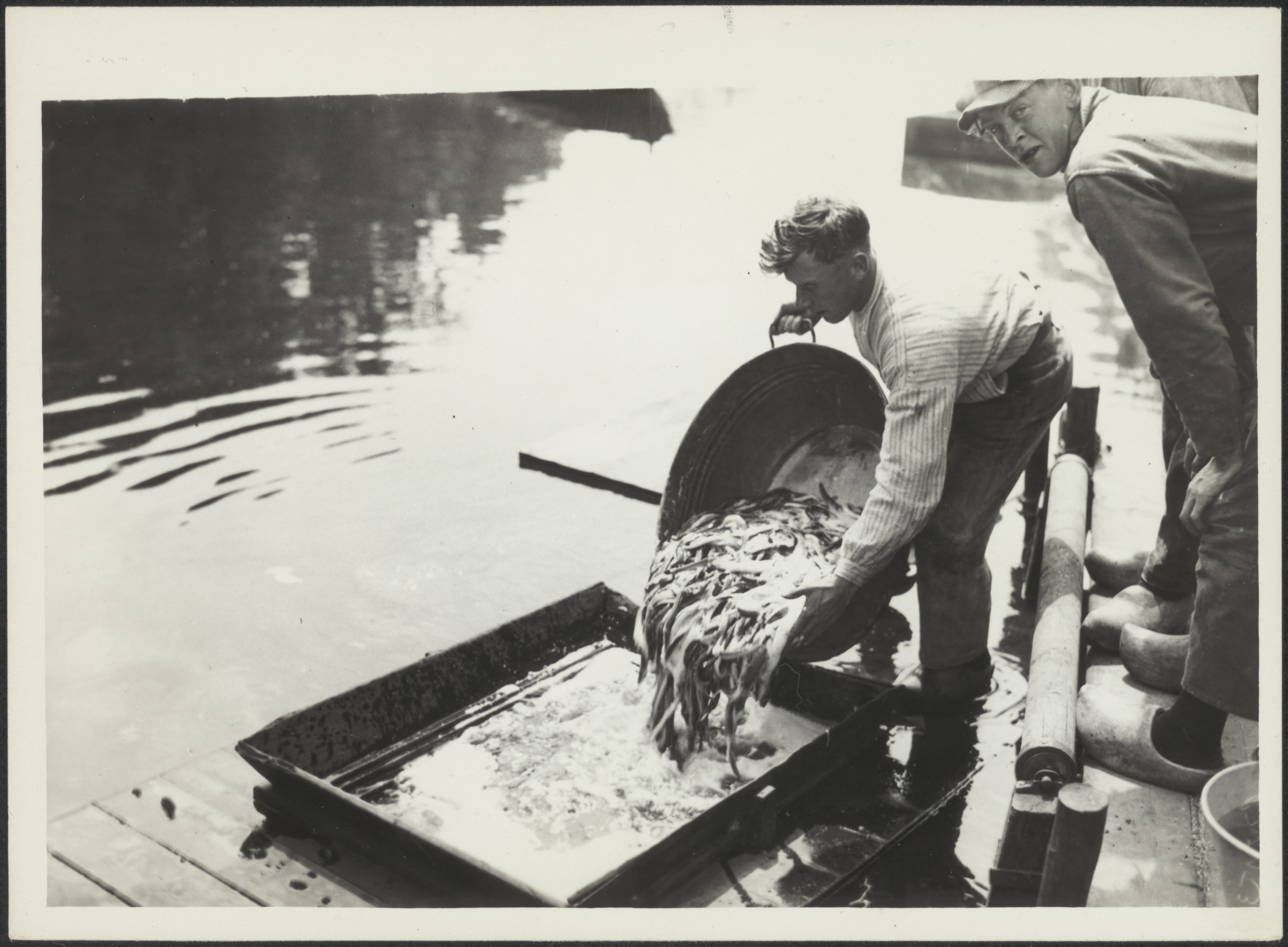 Twee mannen die paling doen in een viskaar te Elburg