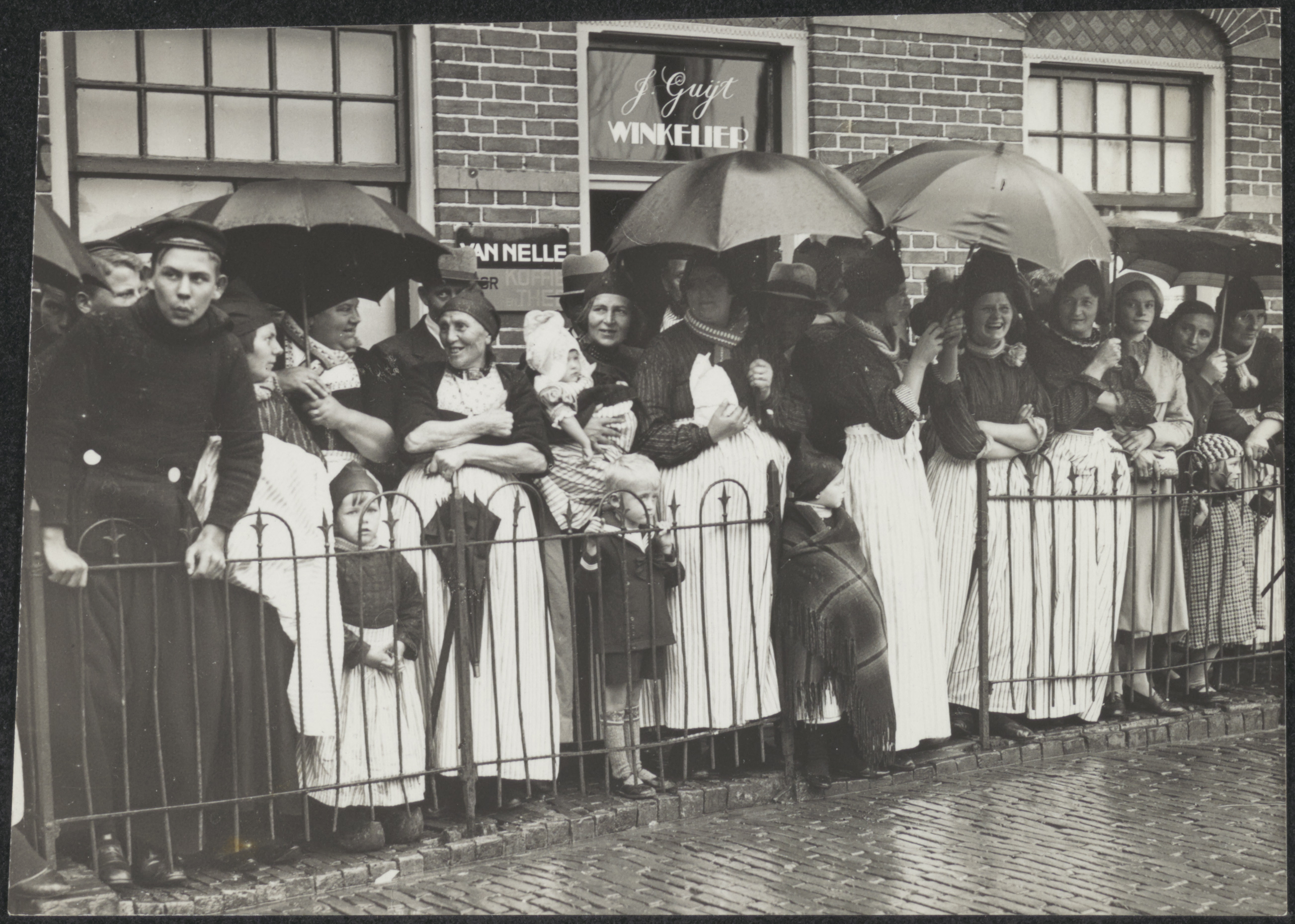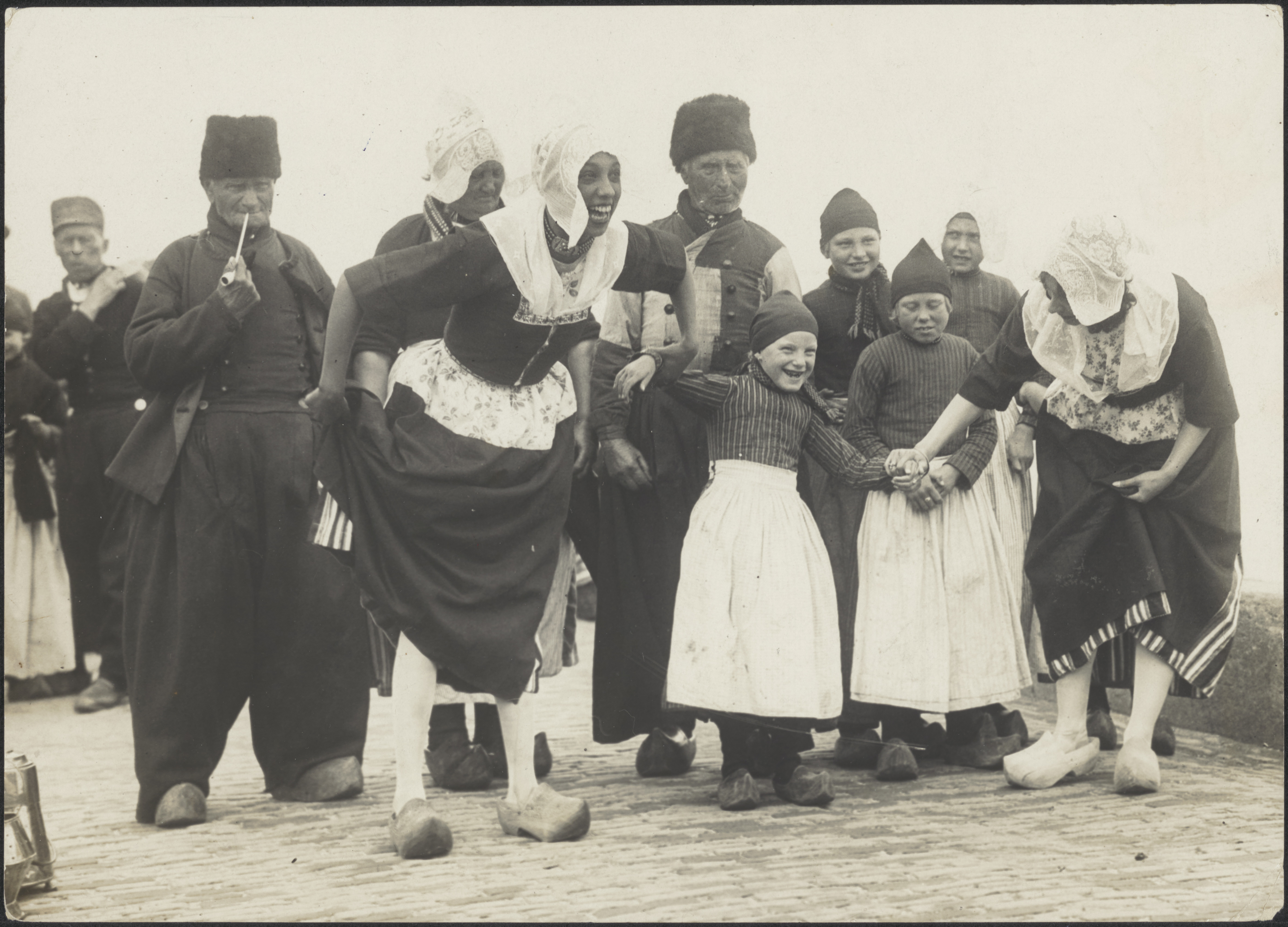 Groepje mensen in Volendammerdracht