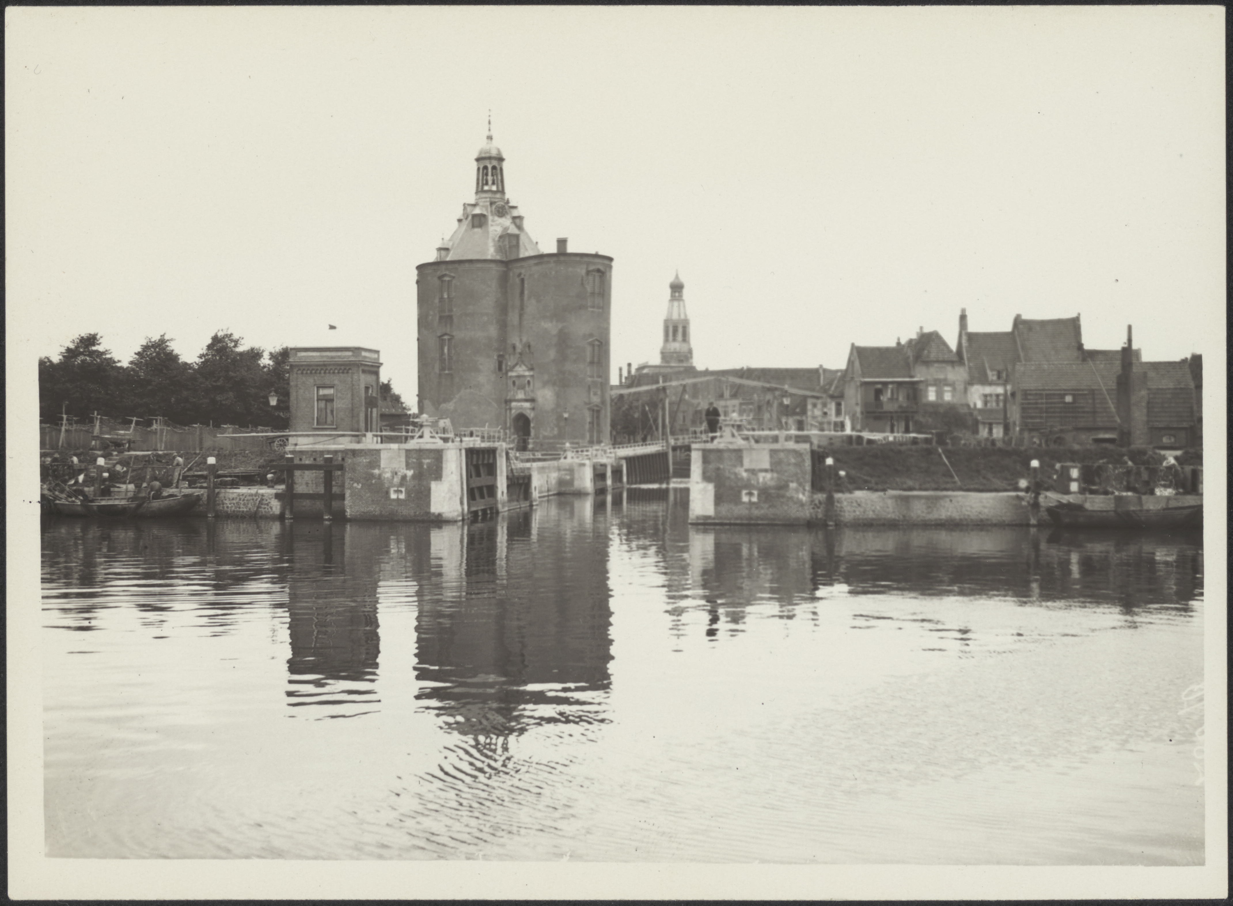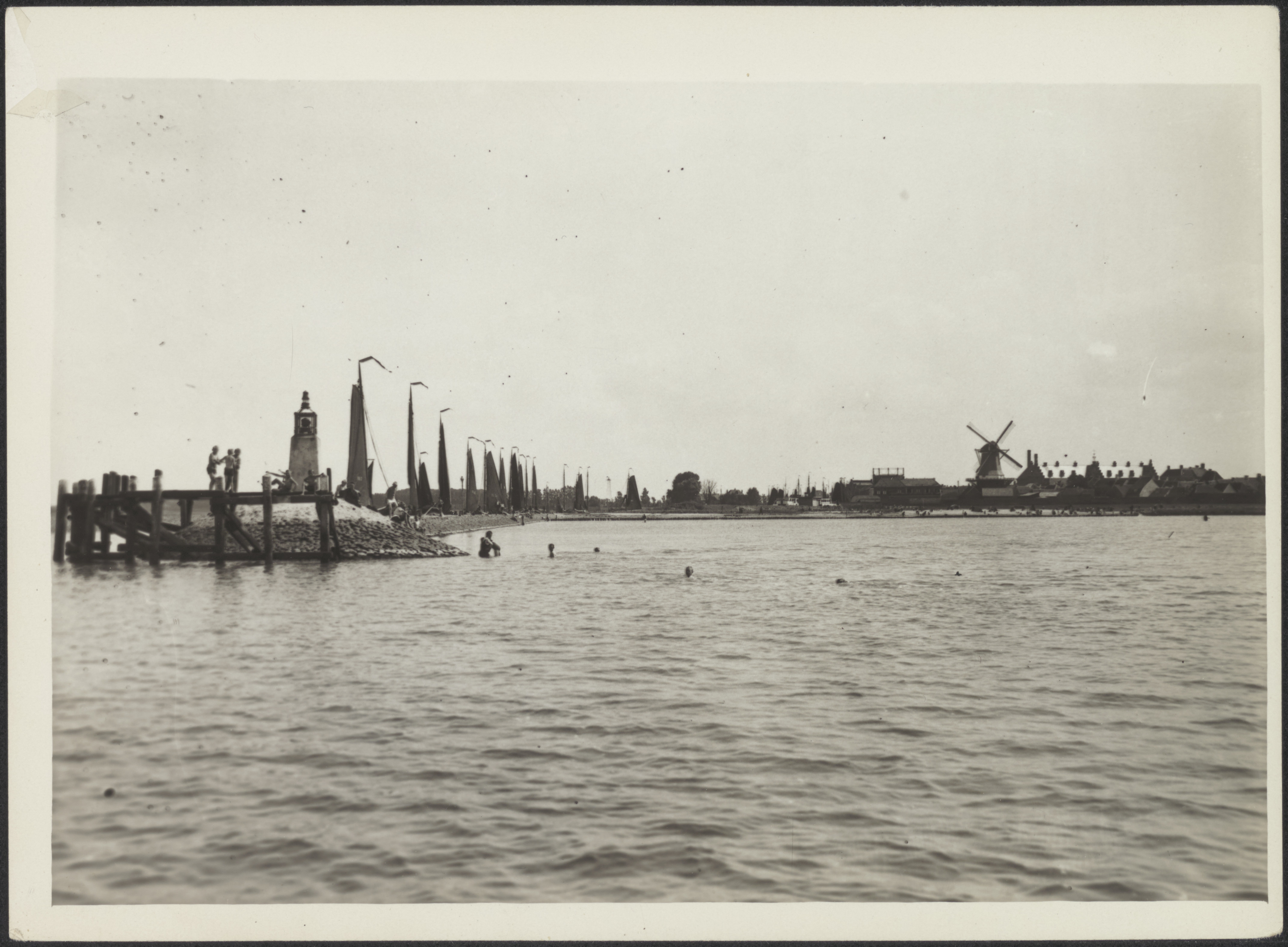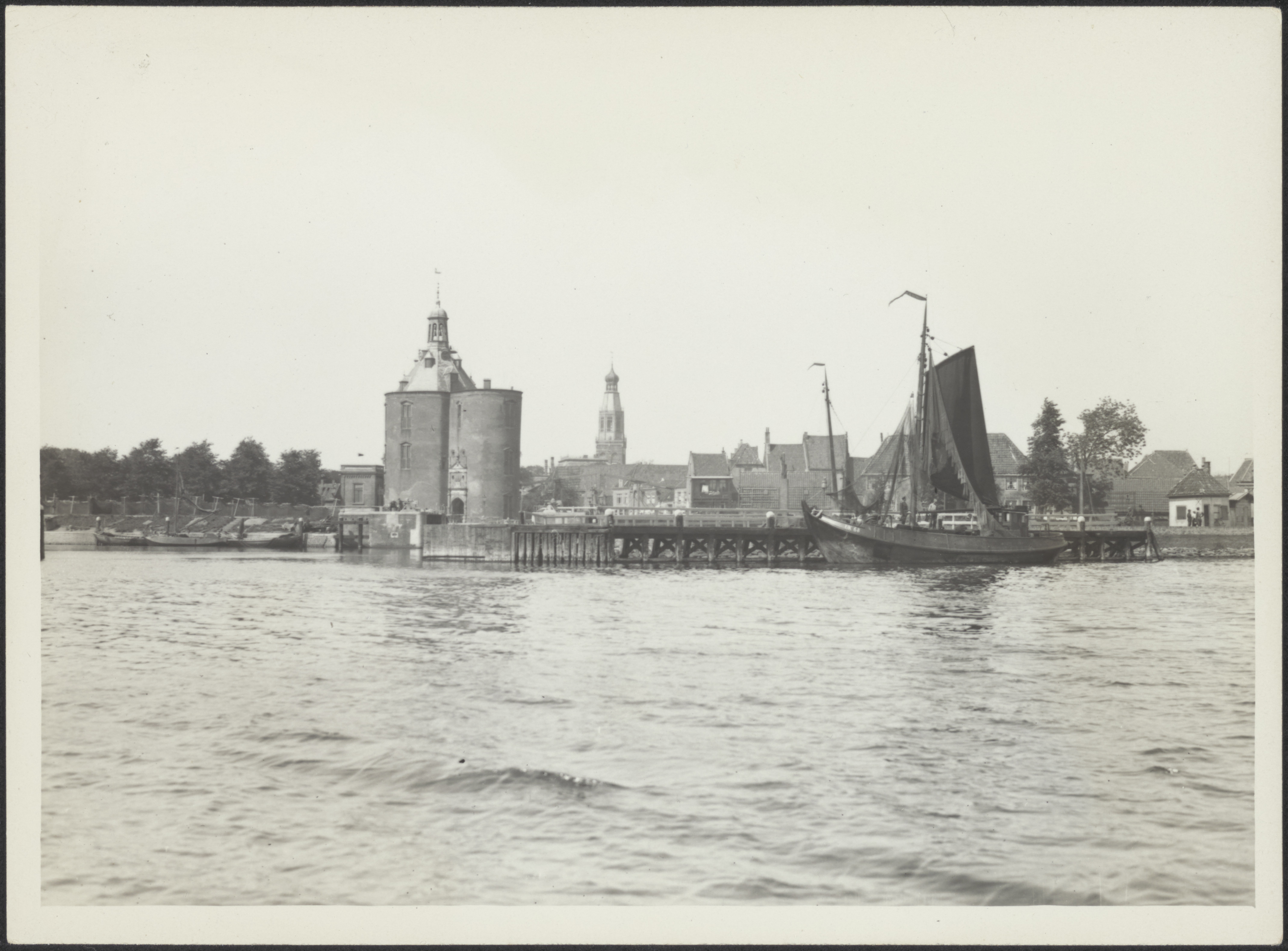Gezicht van uit zee op de haven van Harderwijk