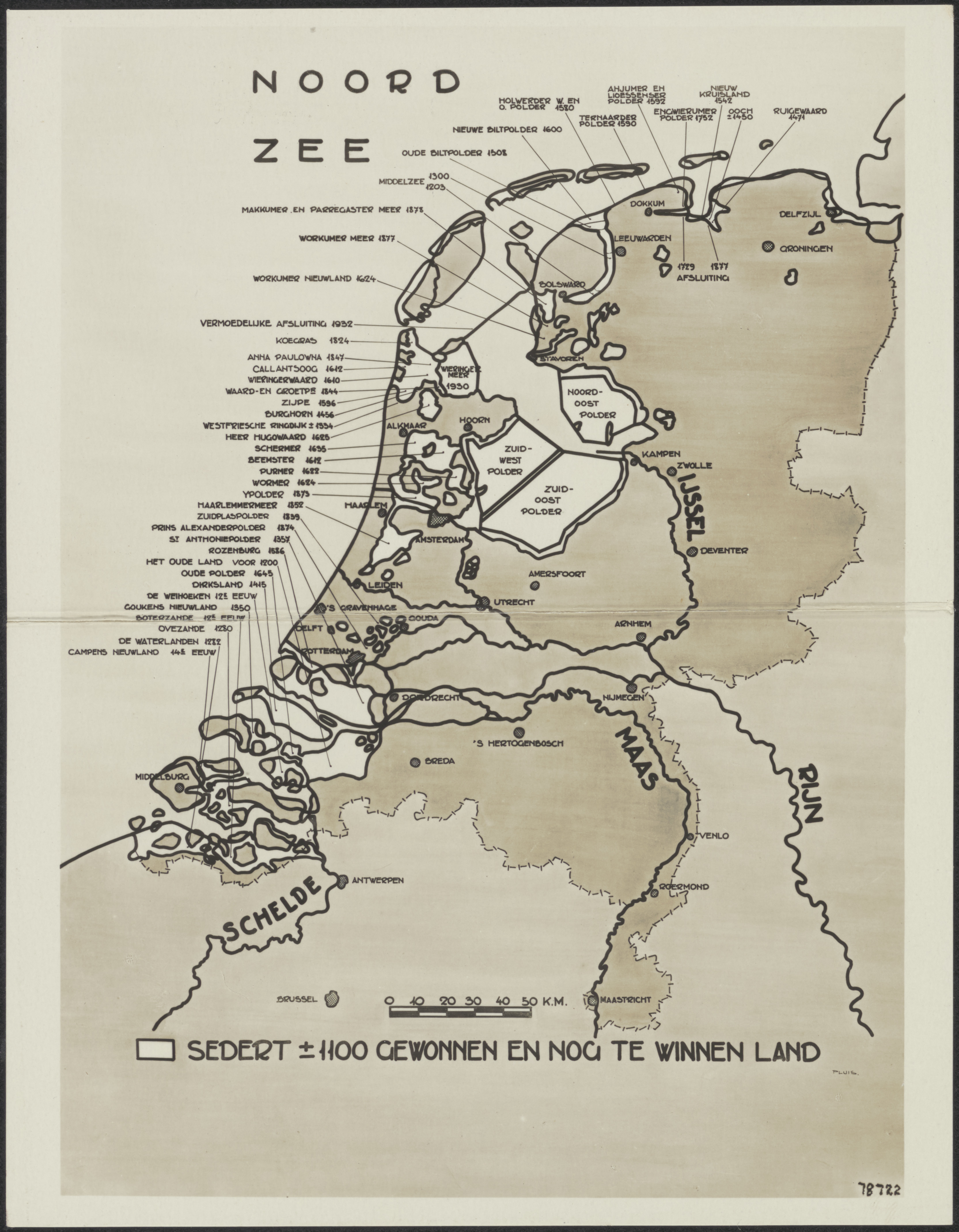 Foto van een kaart Zuiderzeewerken, Nederland