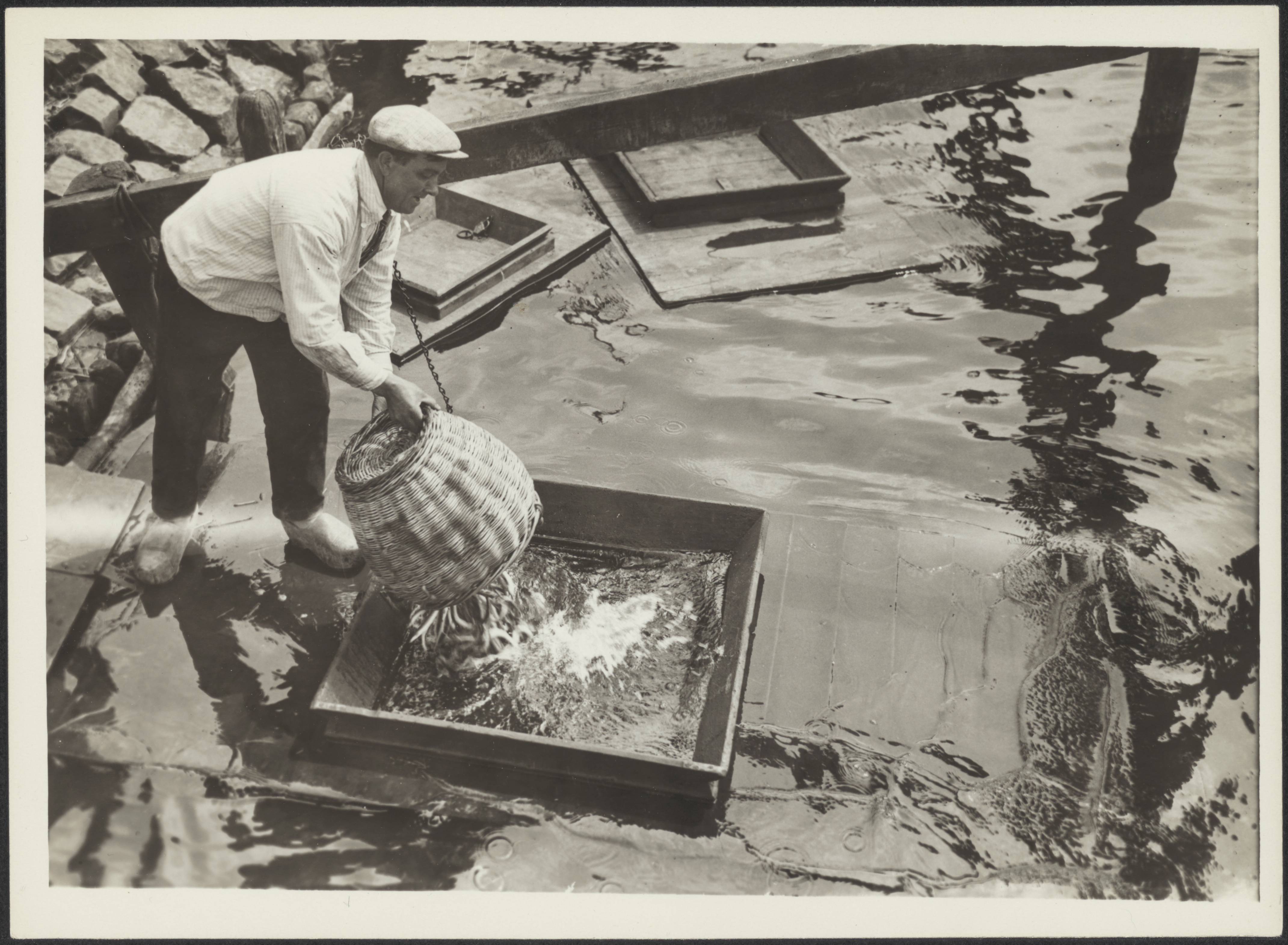 De paling wordt in een kaar gedeponeerd om ze zo lan...