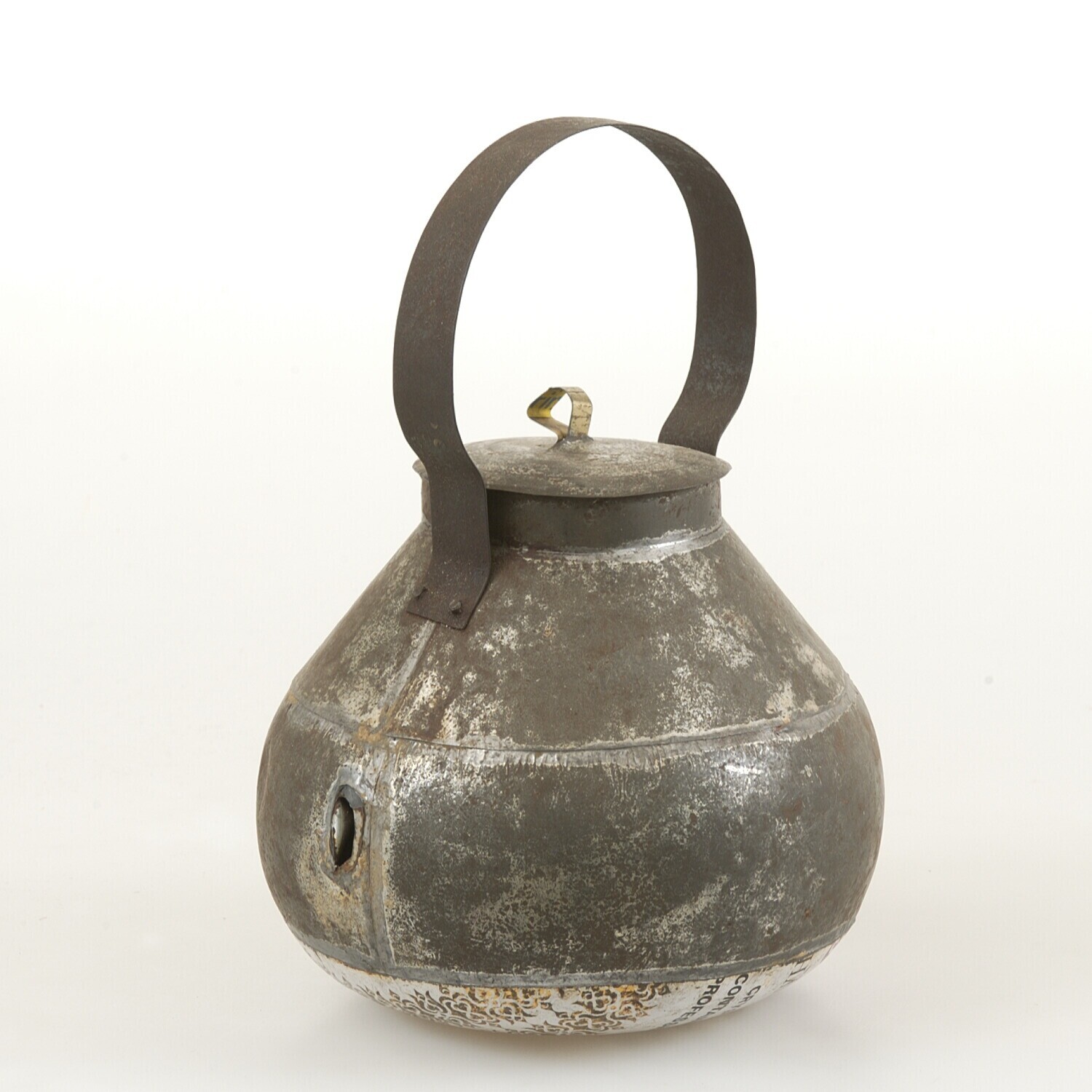 Waterschep van verchroomd blik, gebruikt als kinders...