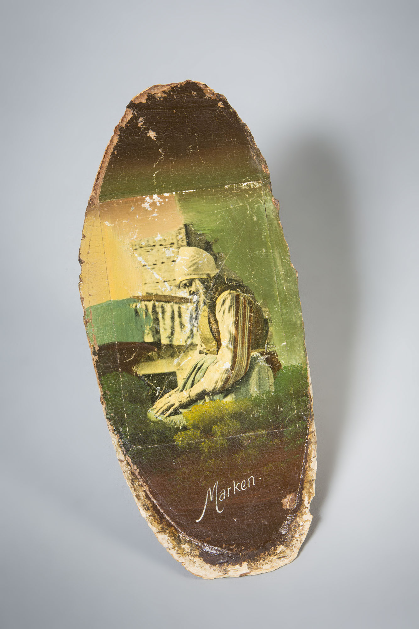 Afbeelding brug te Volendam. gesneden in hout met th...