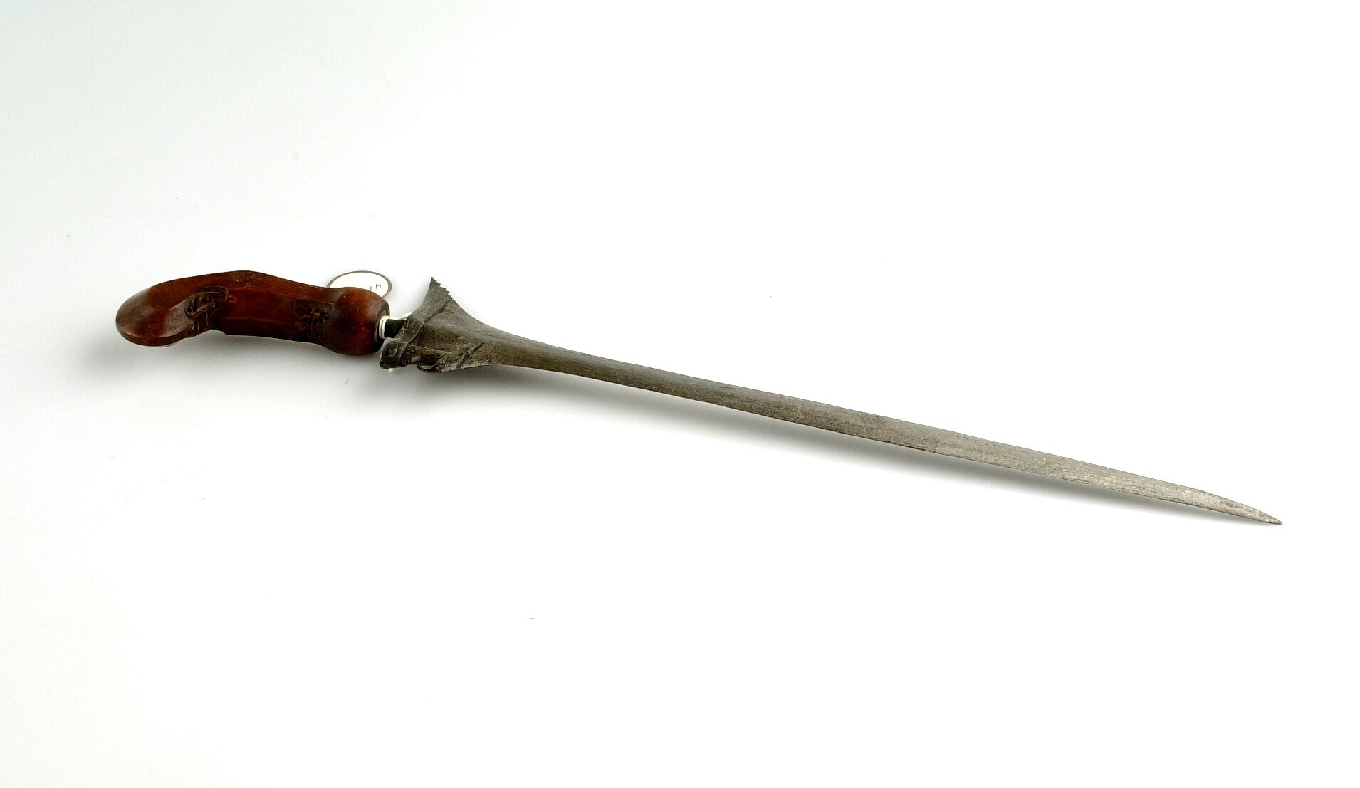 Houten krisgreep in de vorm van een sterk gestyleerd...