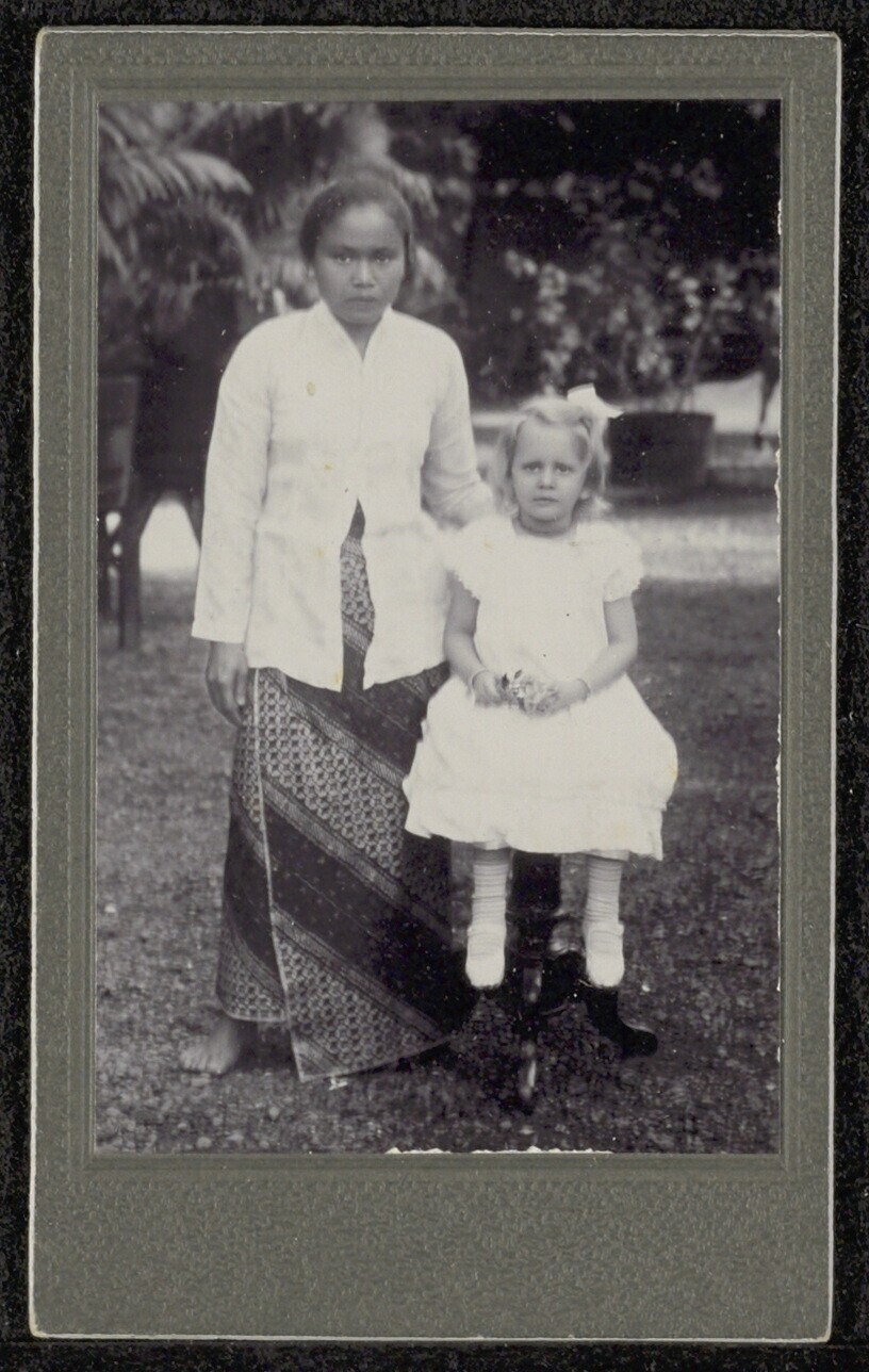 Portret van een Javaanse man met twee kinderen