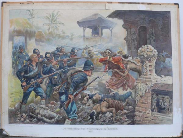Schoolplaat 'De verovering van Tjakranegara op Lombok'