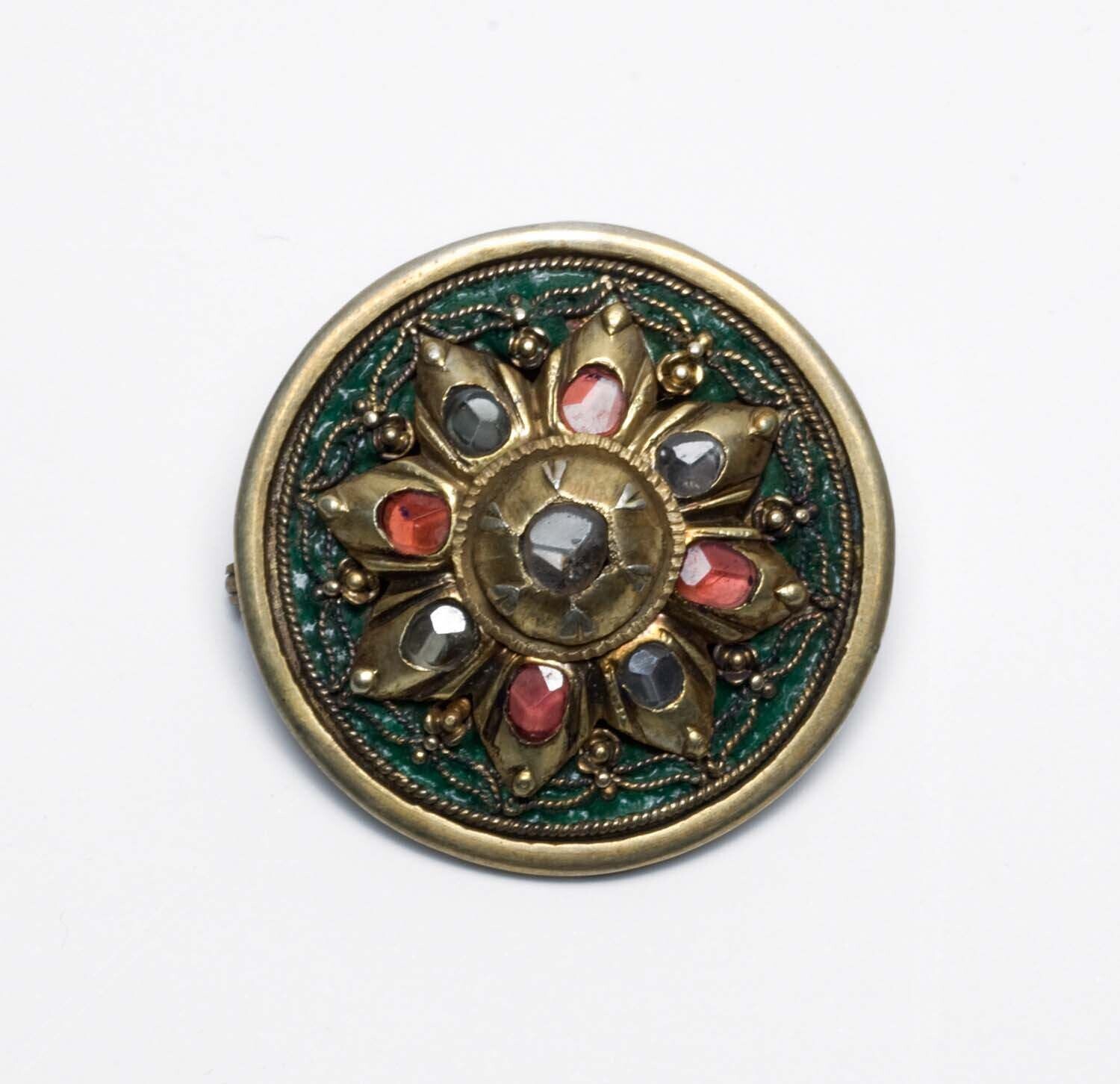 Rond messing bord met wajangfiguur Batara Kreshna vo...