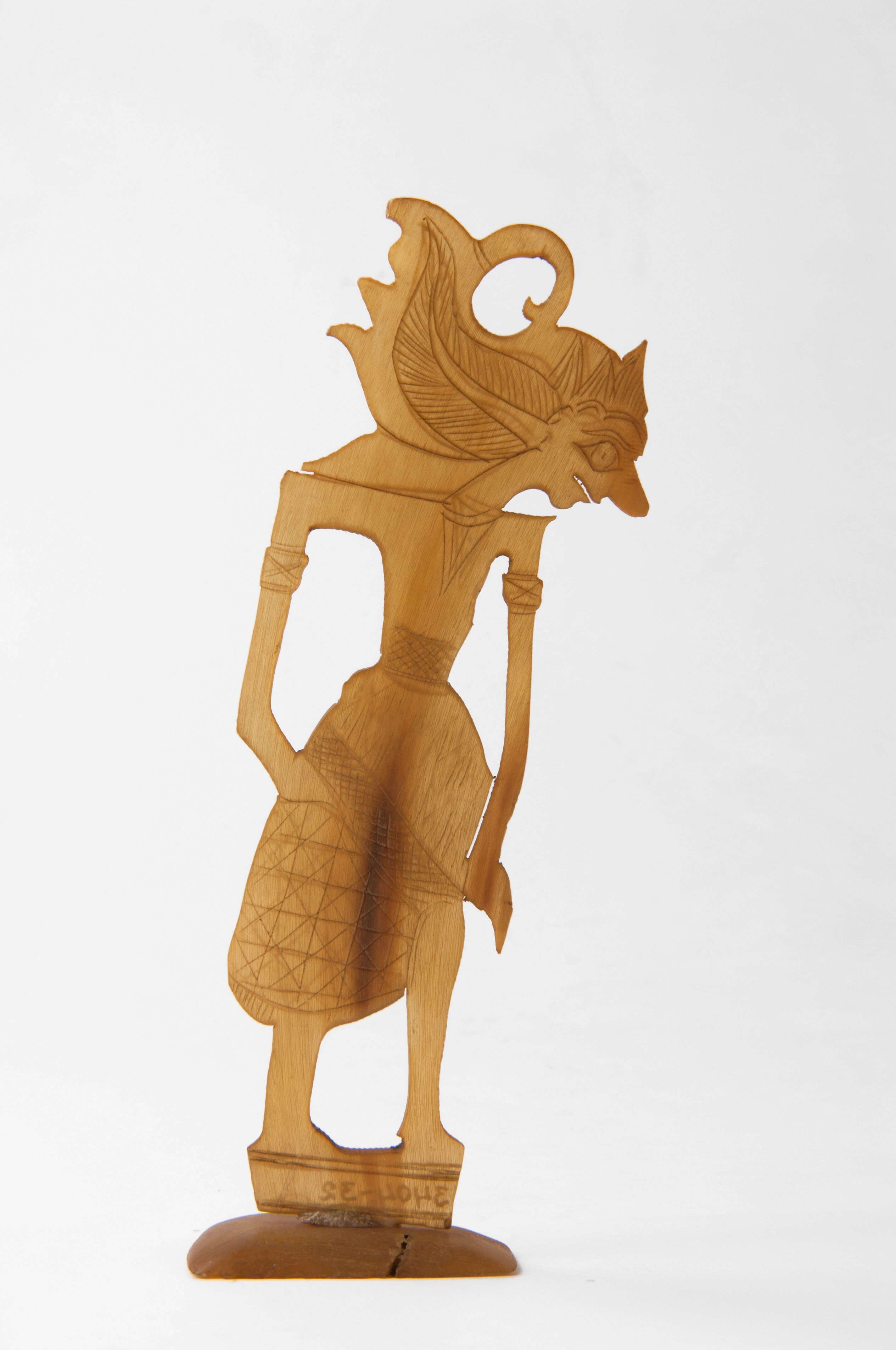 Houten beeld van een wajangfiguur