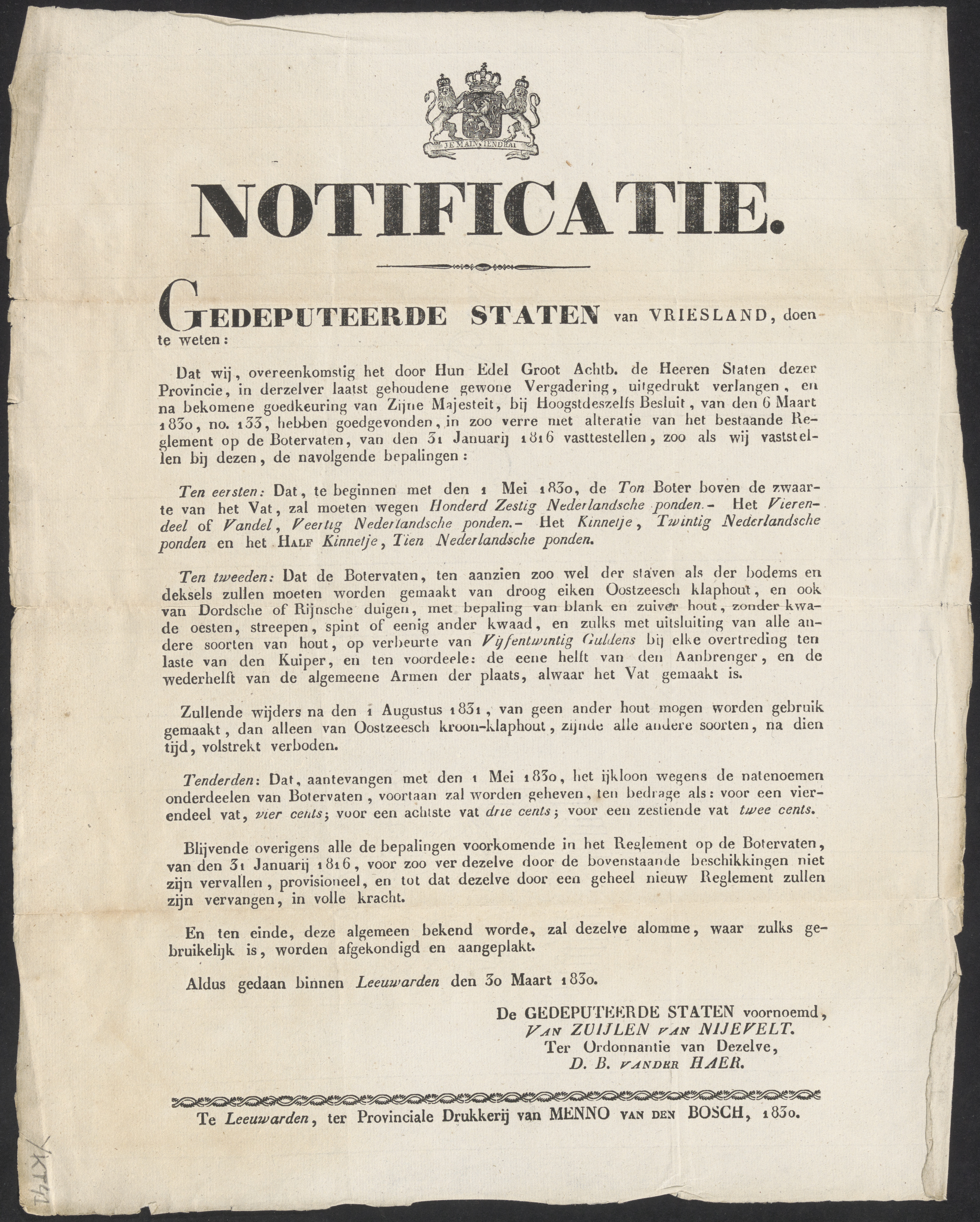 Plakkaat Notificatie Ged. Staten Vriesland omtrent b...