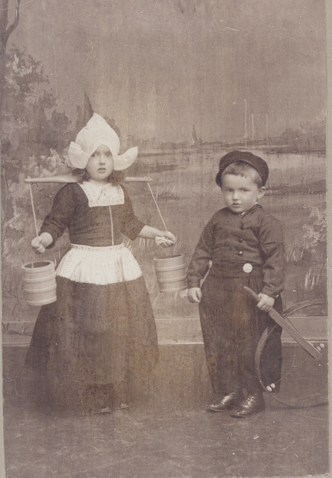 Portret van een jongetje en meisje in Volendammer kl...